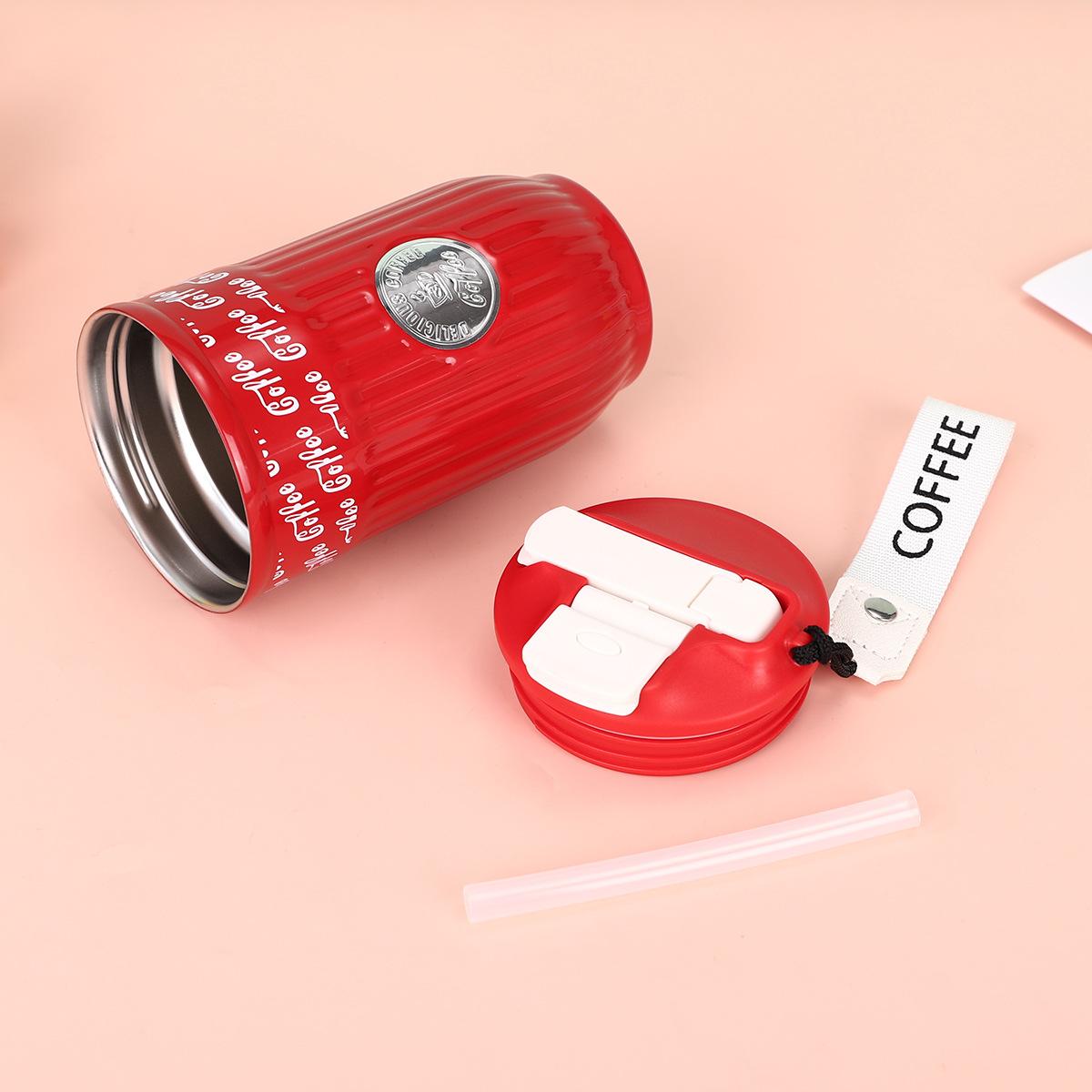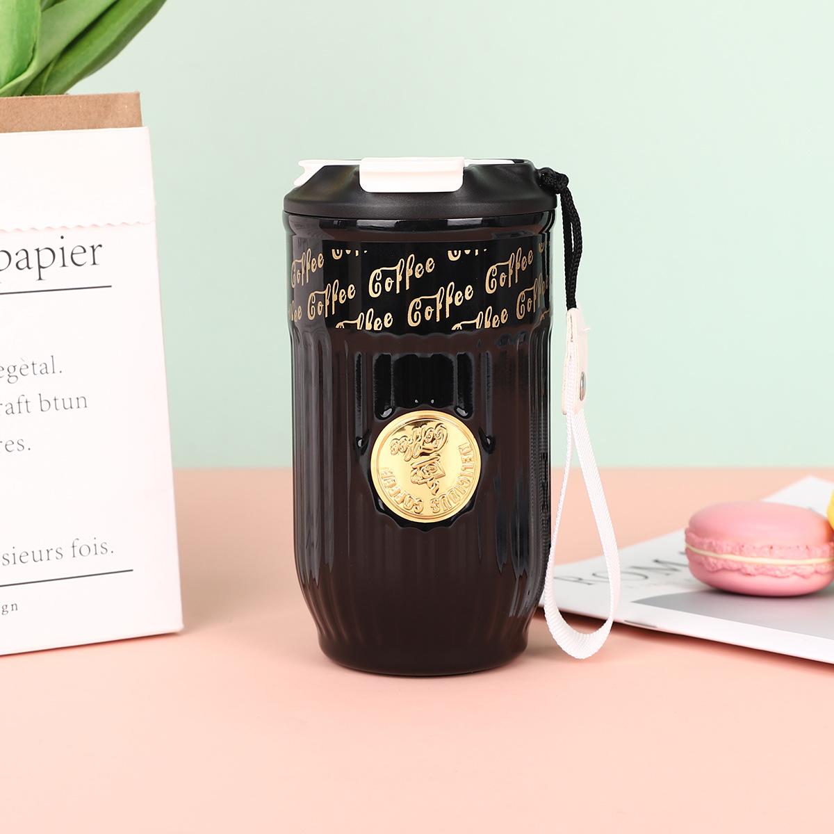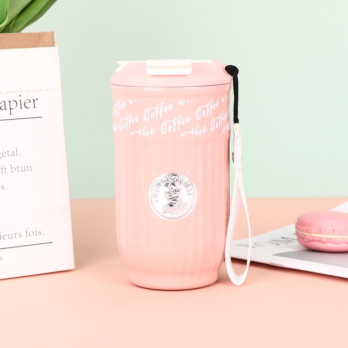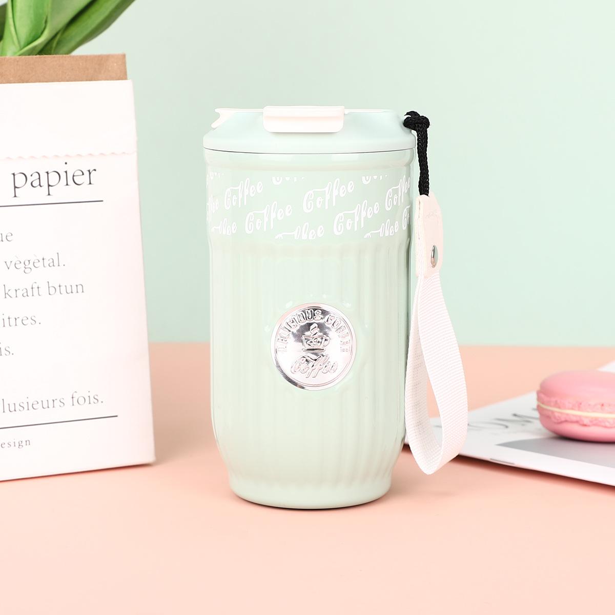Nueva taza térmica de acero inoxidable 304 de alto valor para hombres y mujeres, taza de café portátil con cuerda a rayas, taza de regalo de acompañamiento