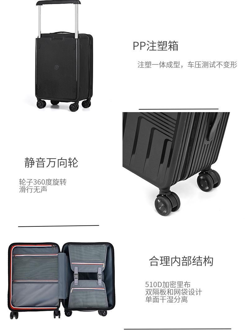 Waterproof, Anti-theft, Carry-on suitcase, Expansion, Front opening cover