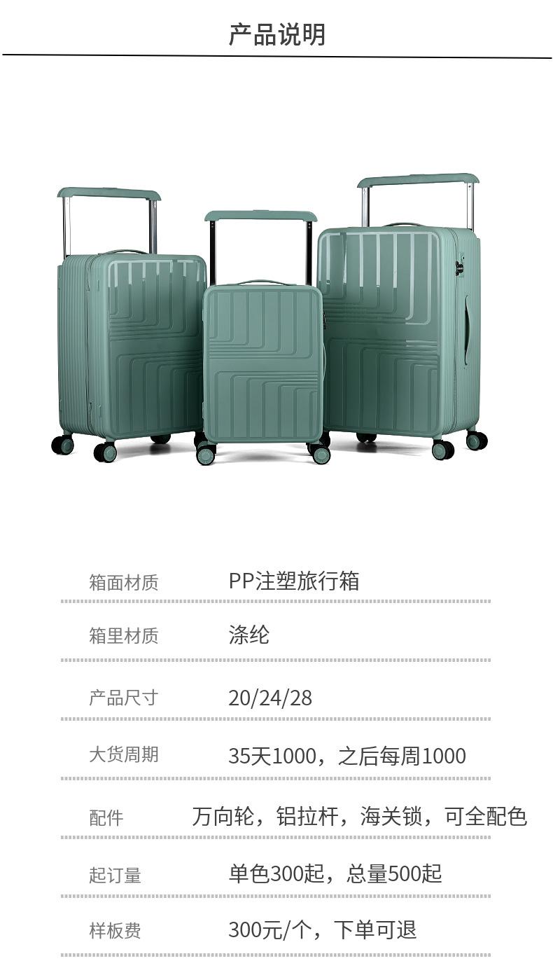 Juego de Tres Piezas de Cubierta Ancha para Trolley Maleta PP Maleta de Material Nuevo Logotipo Personalizado Candado Aduanero Caja con Cremallera de Exportación