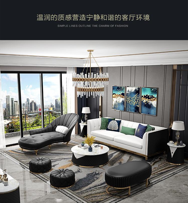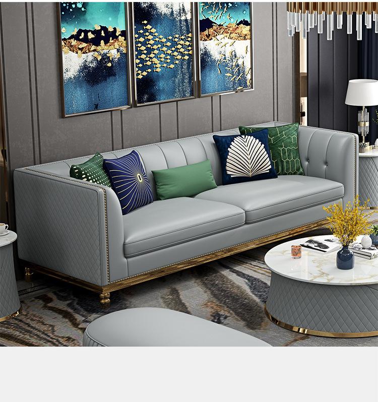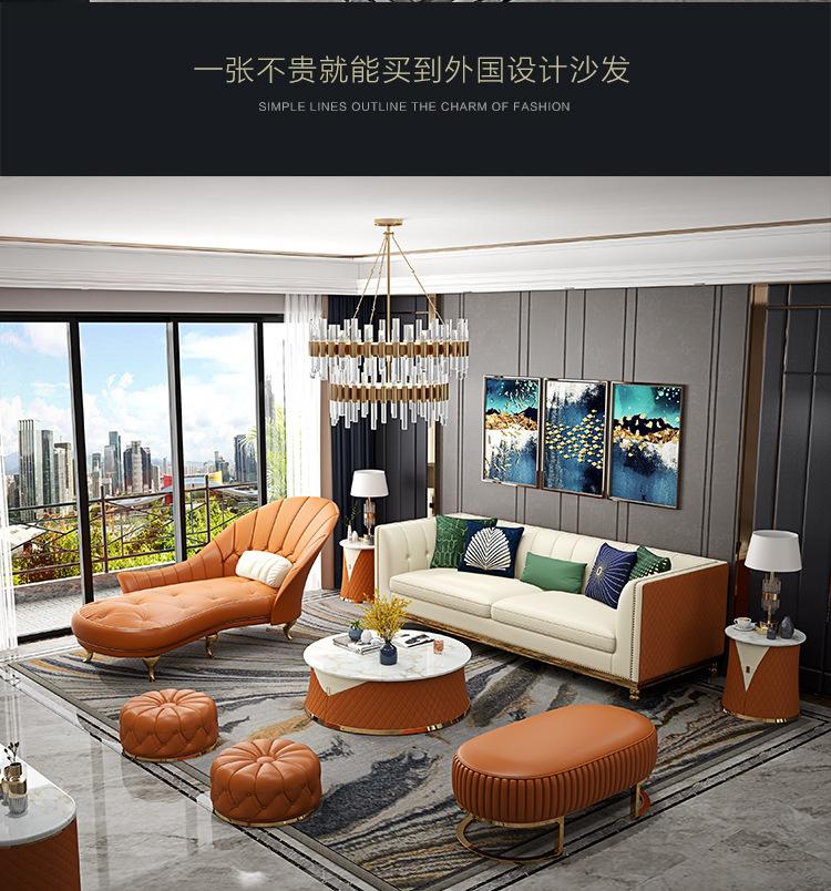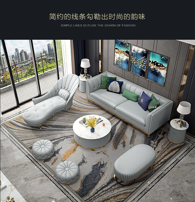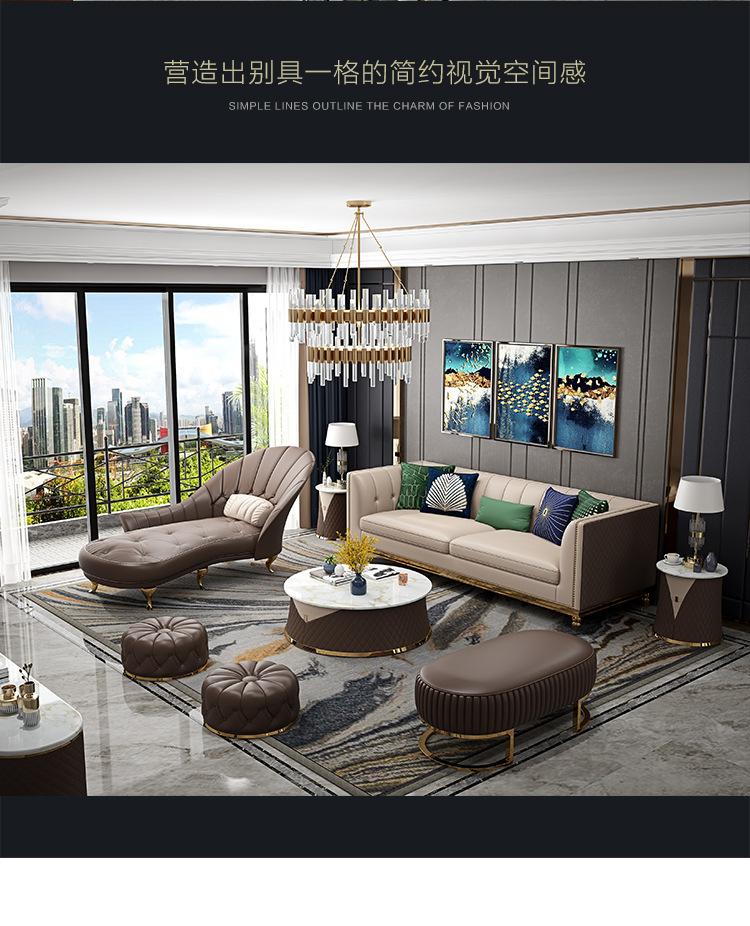 Sofá de Cuero de Estilo Minimalista Postmoderno Estilo Lujo Ligero Estilo Hong Kong Combinación Sala de Estar Totalmente Decorado Sofá de Cuero de Lujo Sofá Americano