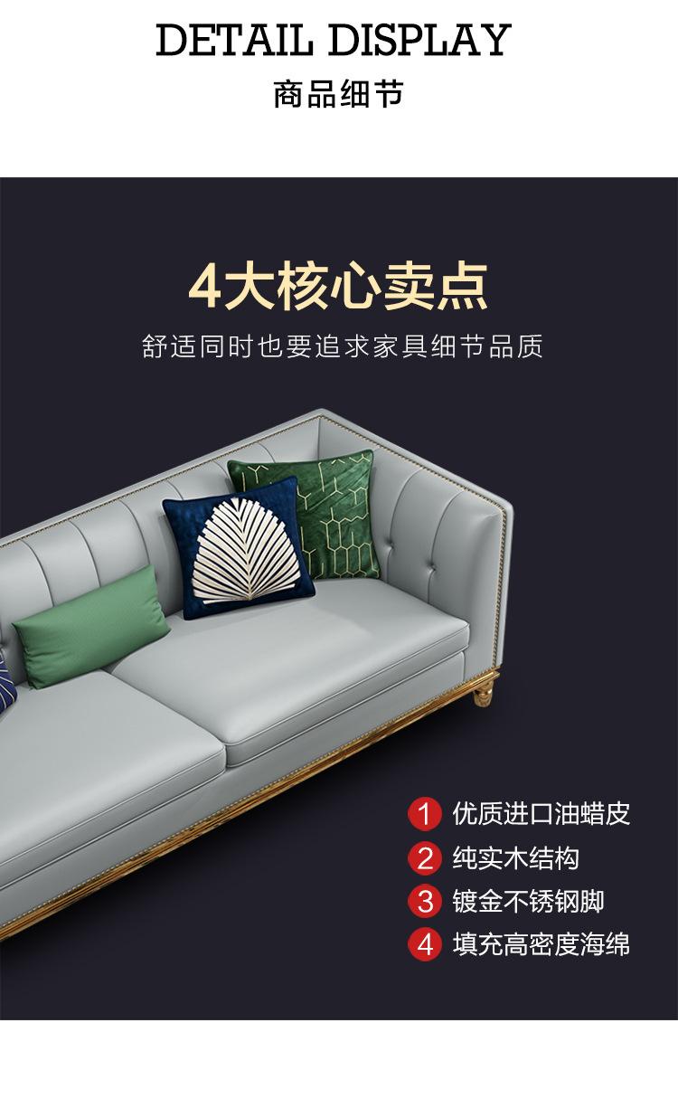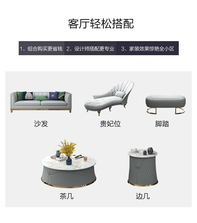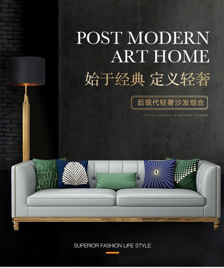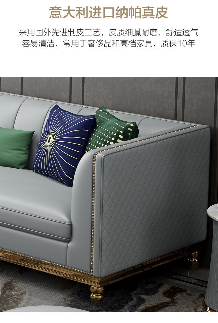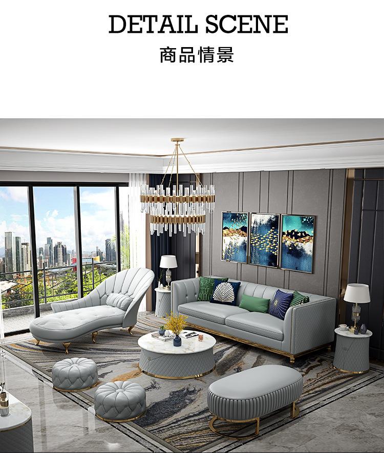 Sofá de Cuero de Estilo Minimalista Postmoderno Estilo Lujo Ligero Estilo Hong Kong Combinación Sala de Estar Totalmente Decorado Sofá de Cuero de Lujo Sofá Americano
