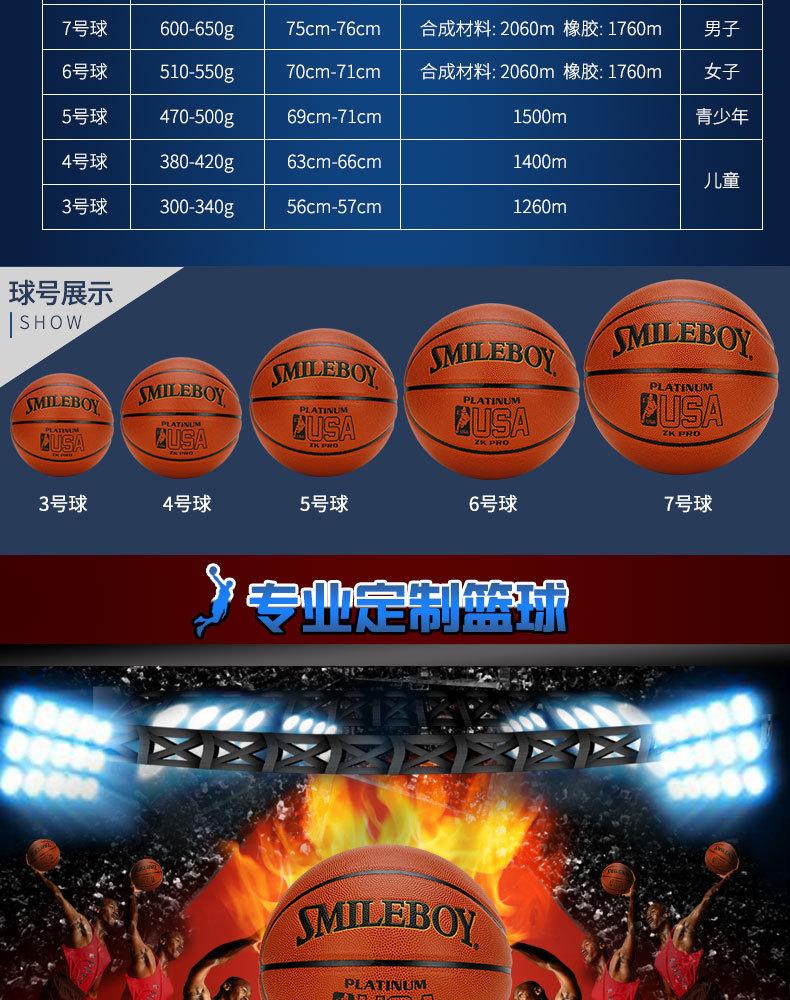 No. 7 basketball (standard ball), No. 6 basketball (women's game)