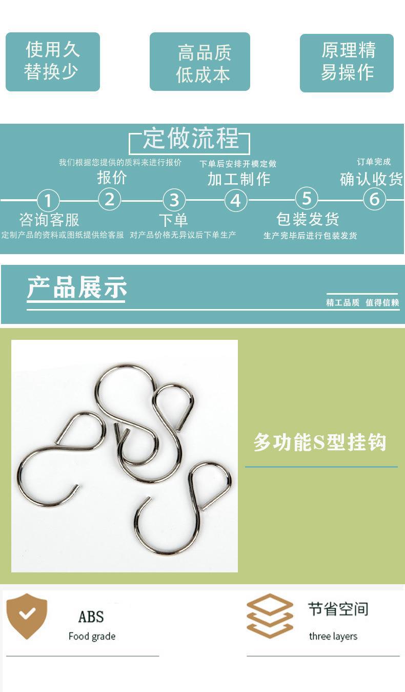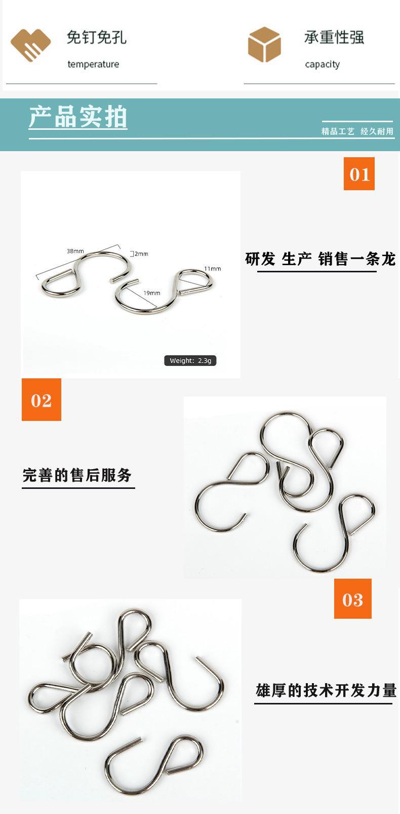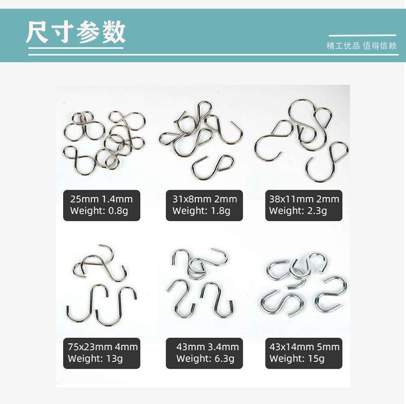 Gancho de metal al por mayor de fábrica, gancho en forma de S, accesorios de ferretería de uso diario, gancho de hierro