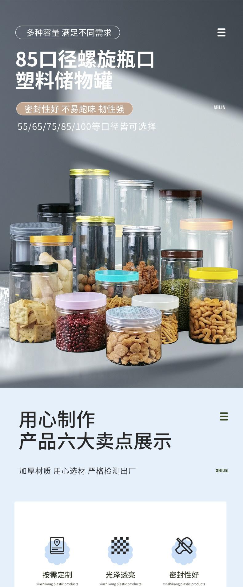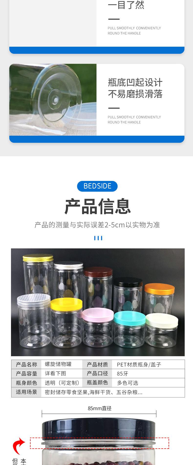 85 latas selladas de té perfumado, latas de almacenamiento, latas de plástico PET, botellas de plástico transparentes de boca ancha, al por mayor