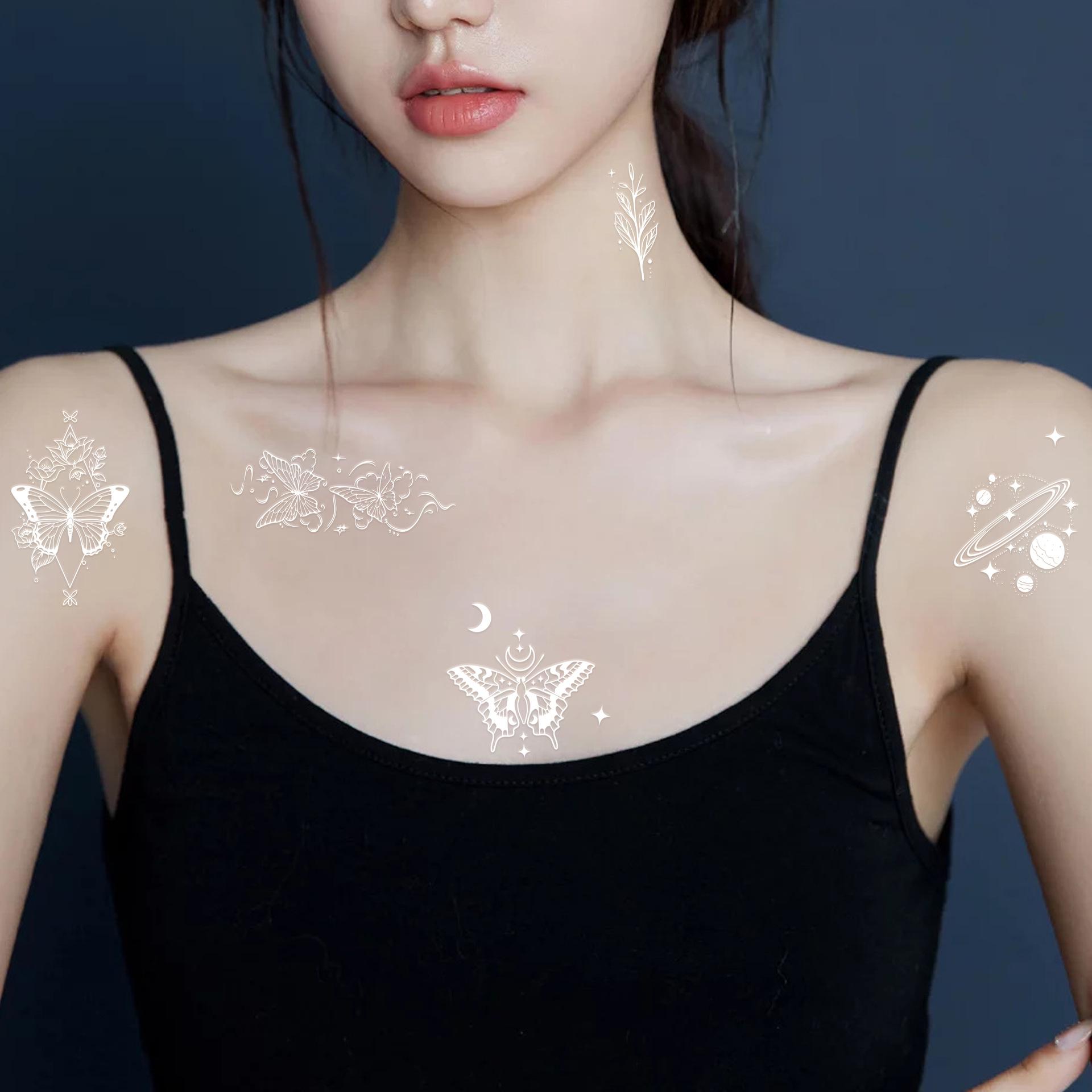 Nueva pegatina de tatuaje de mariposa blanca transfronteriza con simulación avanzada de sentido del tacto, pequeña y fresca pegatina de tatuaje para clavícula y brazo.