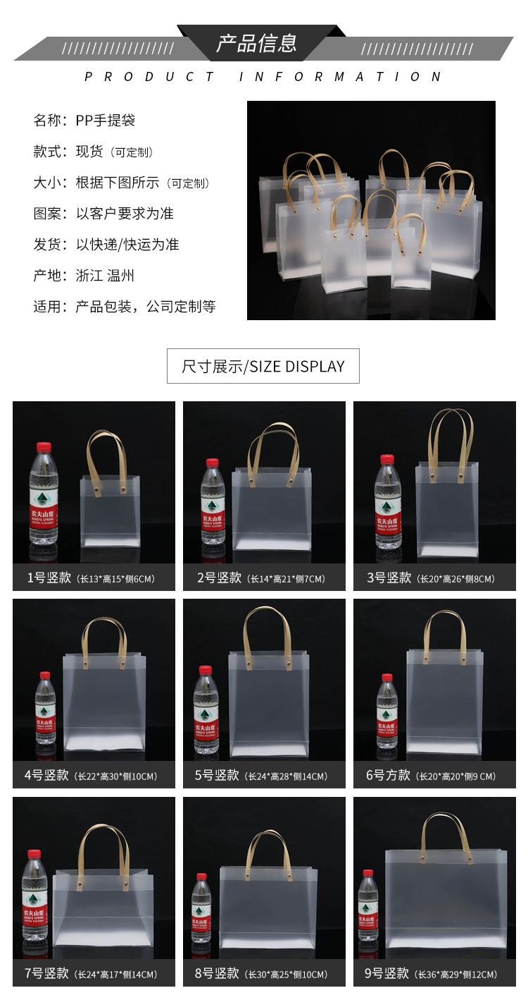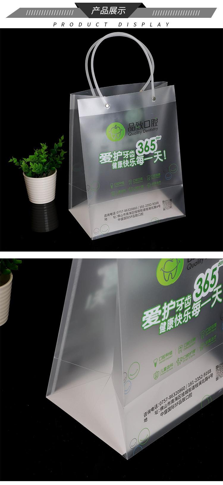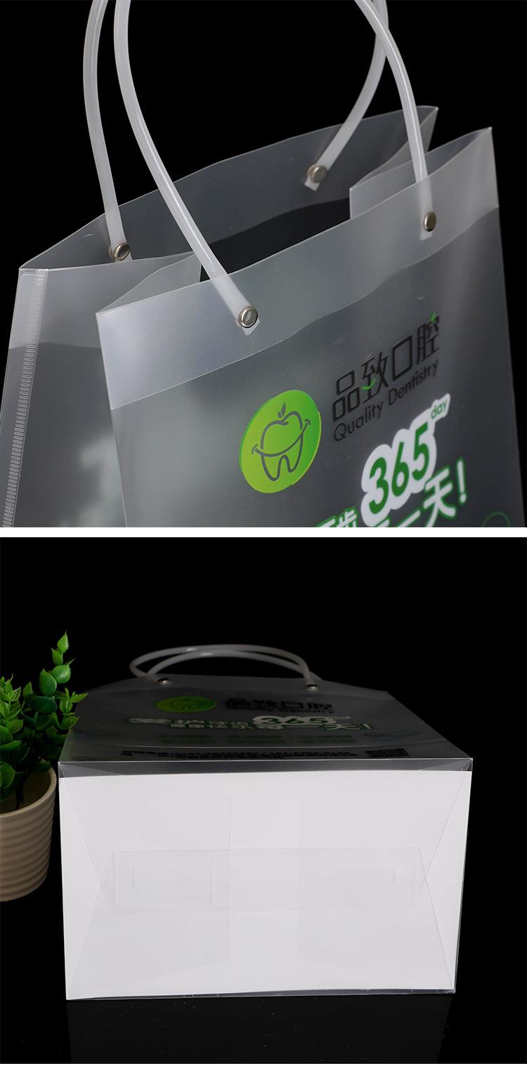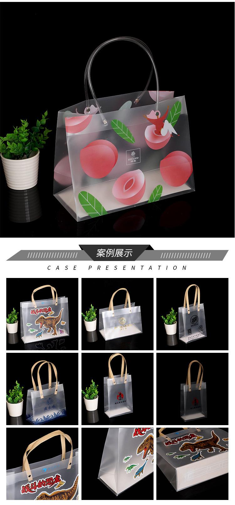 Bolsa de compras de PVC transparente, bolsa de regalo de ropa de plástico PP esmerilado, bolsa de regalo de mano, patrón de logotipo imprimible