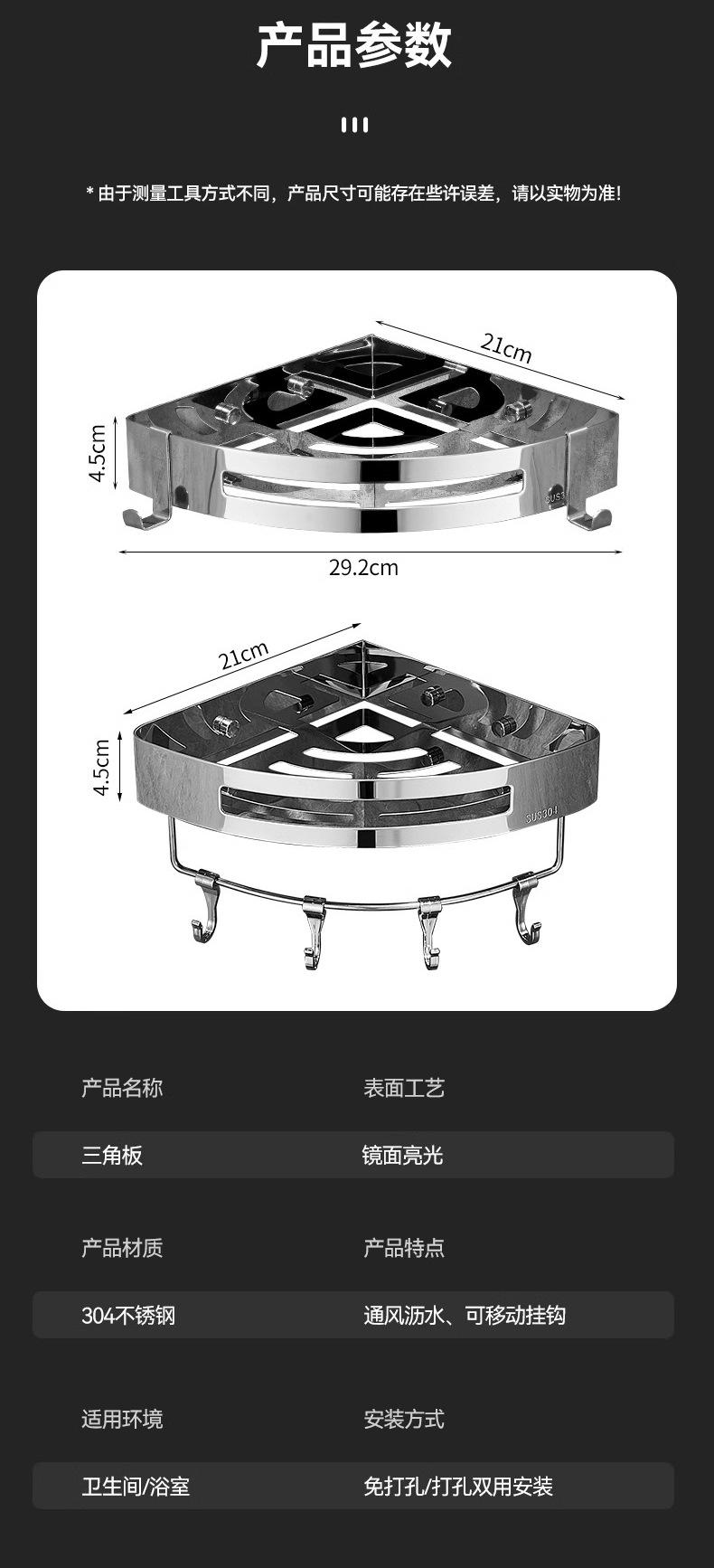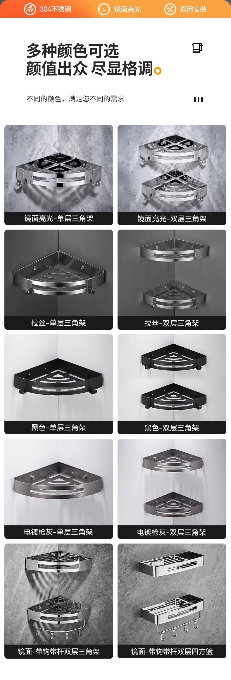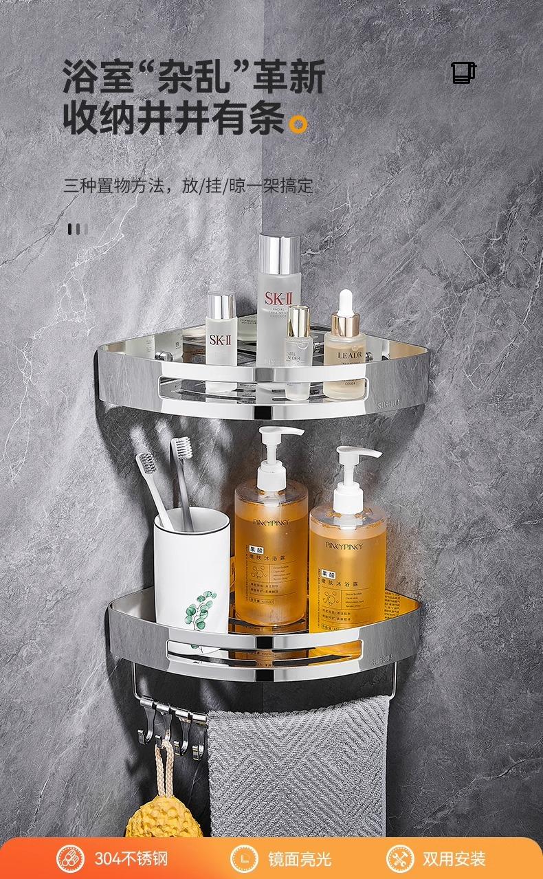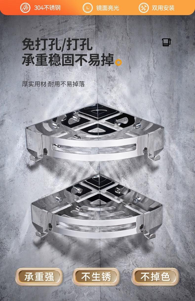 Estante de baño triangular sin perforaciones de acero inoxidable 304 para almacenamiento de inodoro, estante de esquina para baño montado en la pared