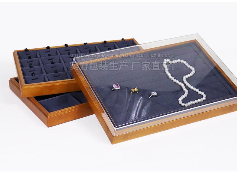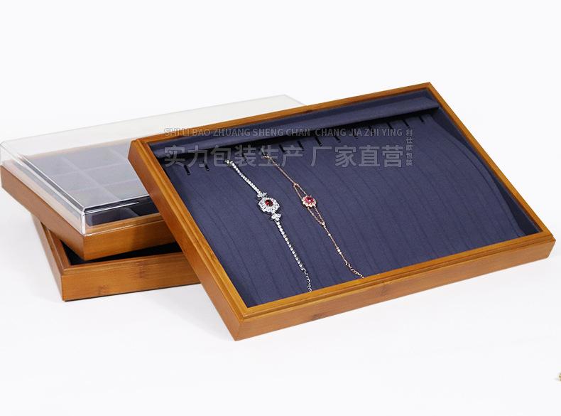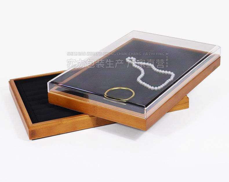 Bandeja de madera de bambú personalizada para exhibir joyas con tapa, bandeja para anillos, collares y pulseras, bandeja para guardar joyas, accesorios para exhibir joyas.