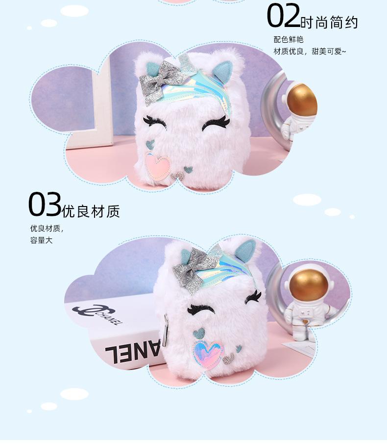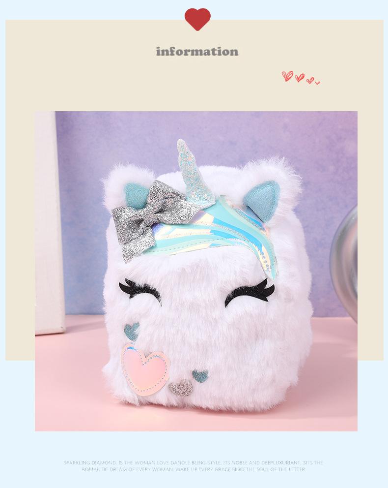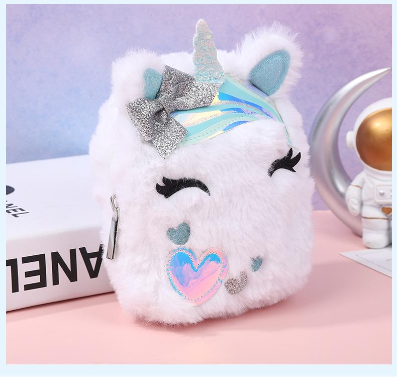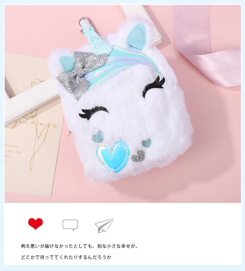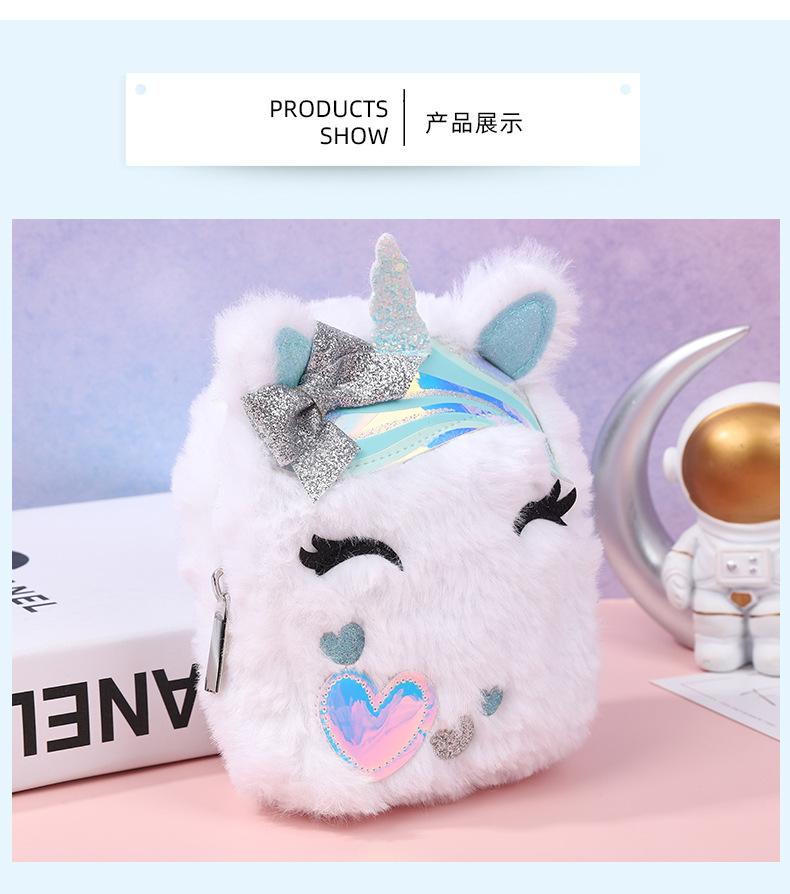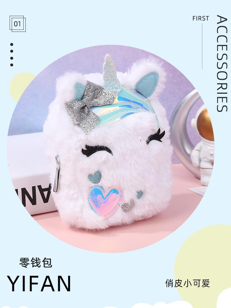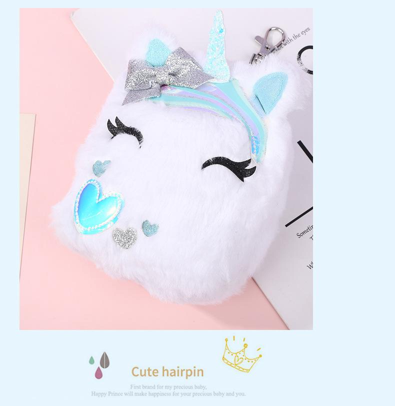 Lindo Monedero de Unicornio Entrecerrado de Peluche Otoño e Invierno para Niños Bolsa Portátil para Guardar Cambio Escolar para Niños
