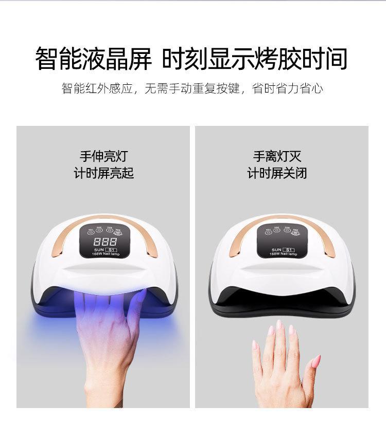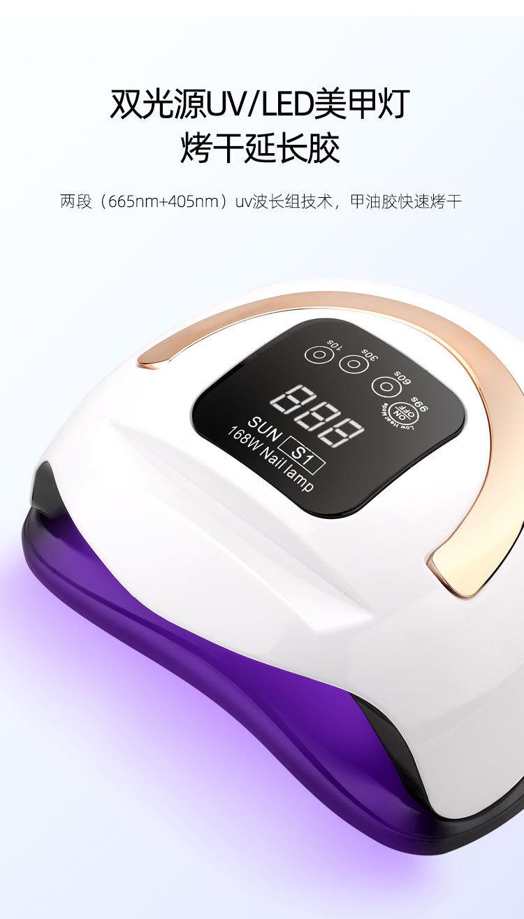 Lámpara de manicura SUN S1 portátil de 168 W, máquina de fototerapia LED para secado de uñas, UV, soporte para teléfono móvil, doble fuente de luz colorida