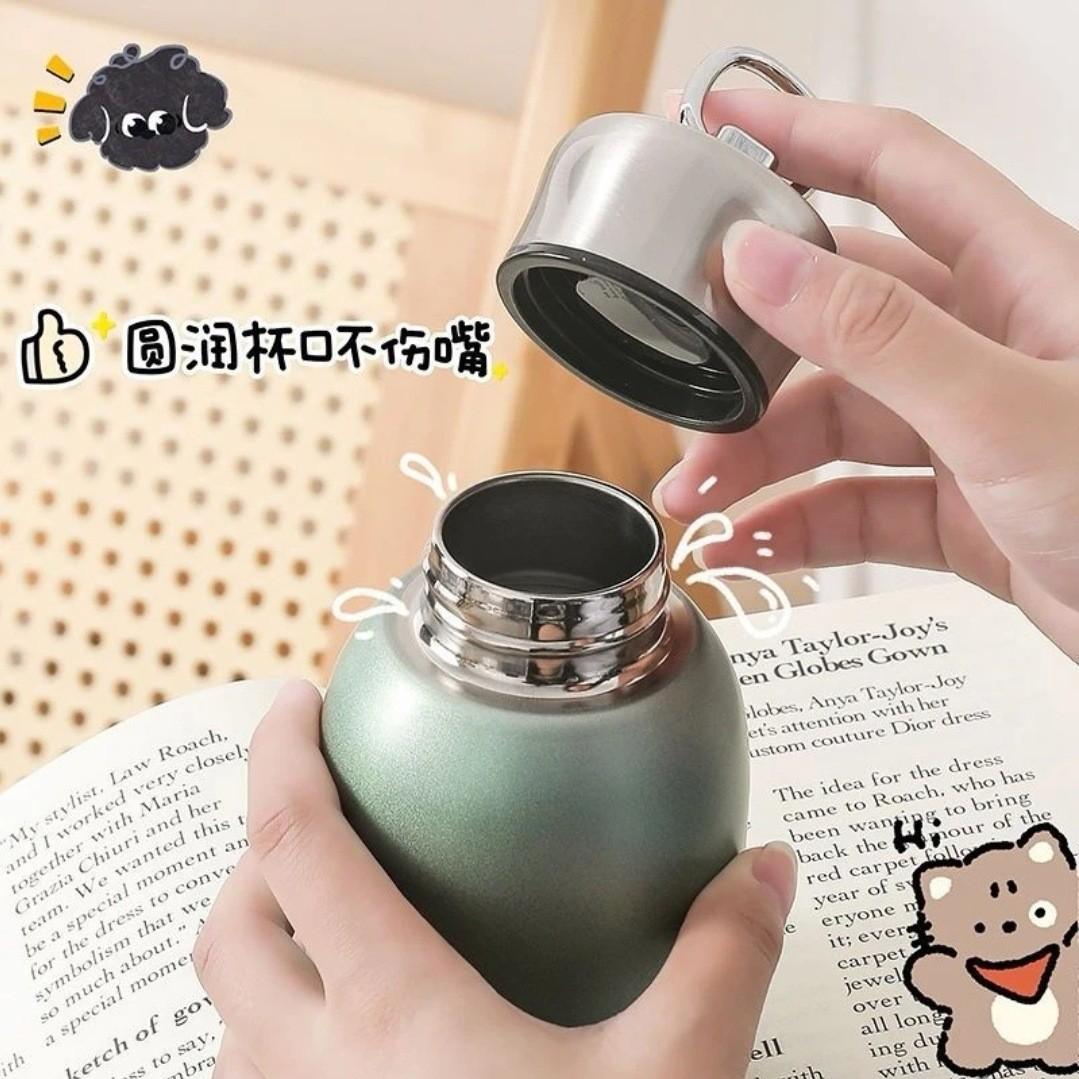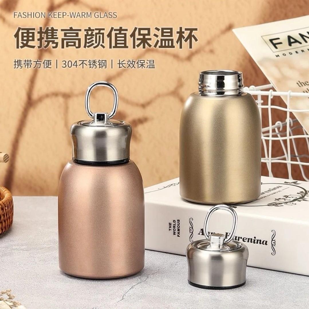 Termo creativo de acero inoxidable Ding, pequeño y grueso, moderno, de pequeña capacidad, para agua, portátil, para exteriores, con asa, mini taza de bolsillo