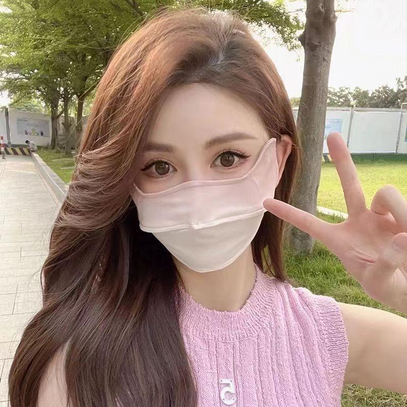 Ángulo de Ojo Mascarilla Delgada Verano Seda de Hielo Mascarilla Protector Solar Igual Protección UV para Mujer Parasol Abierto Transpirable