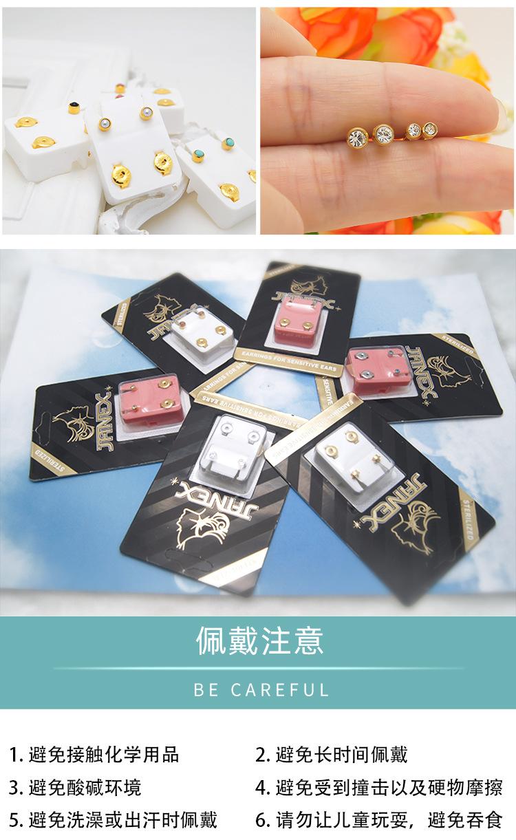 Aretes de Acero Inoxidable Personalizados al Por Mayor de Fábrica Transfronterizos para Mujer, Empaquetados Individualmente, Aretes de Botón con Diamantes, Aretes de Pistola, Mini