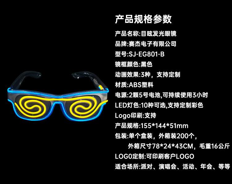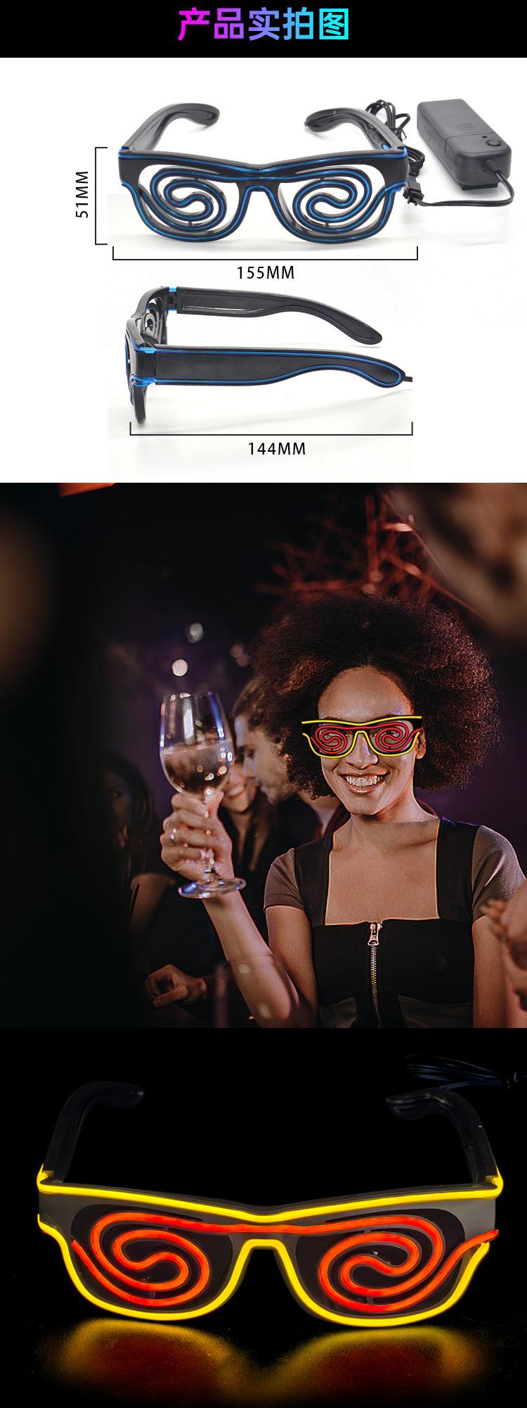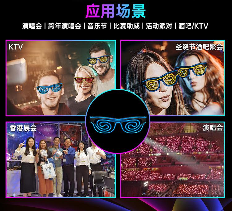 Gafas Luminosas Personalizadas Transfronterizas, Gafas de Fiesta Mareantes, Bar de Festival de Música Electrónica, Espiral Celebridad de Internet Disco Led Modelo Recargable
