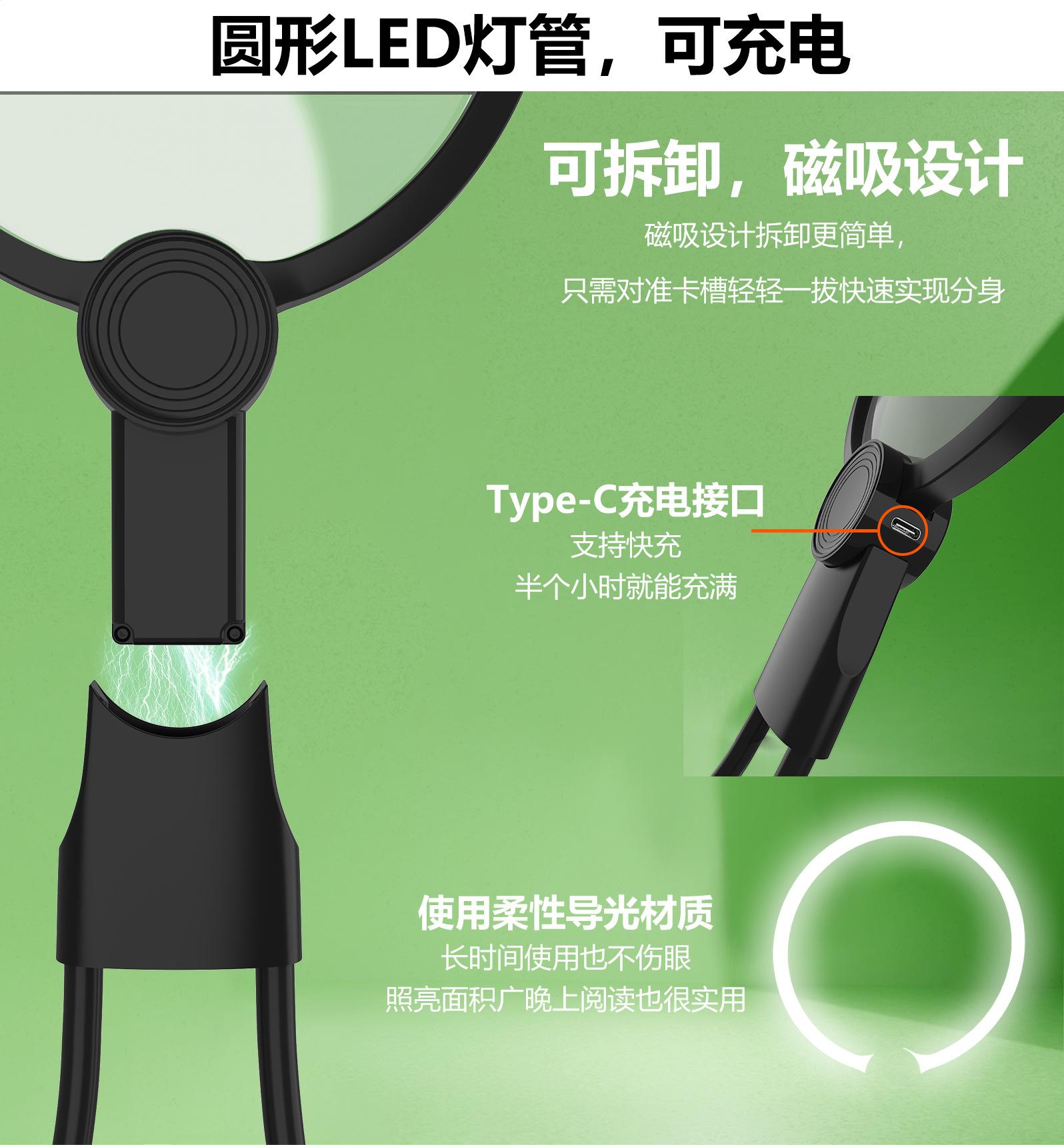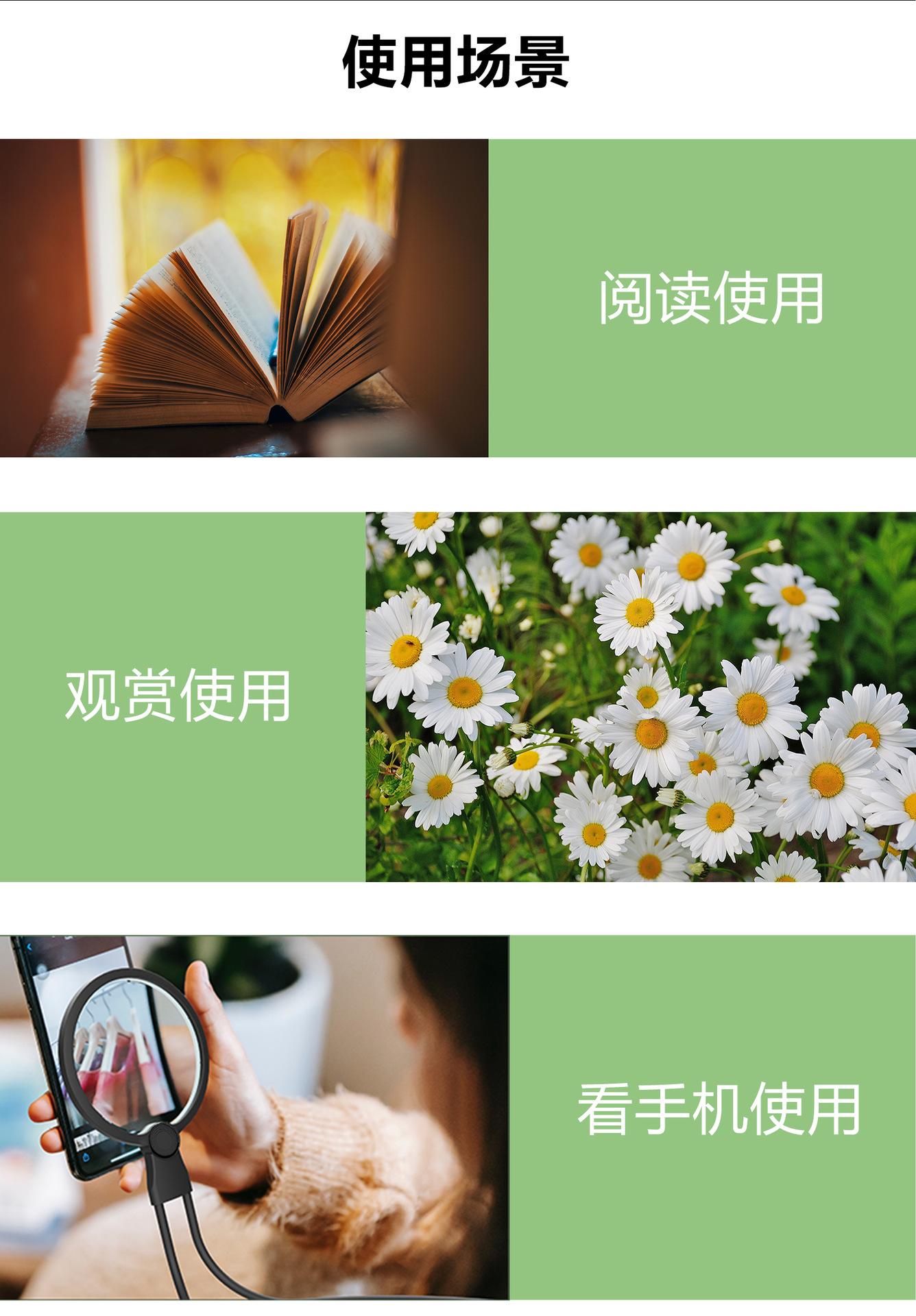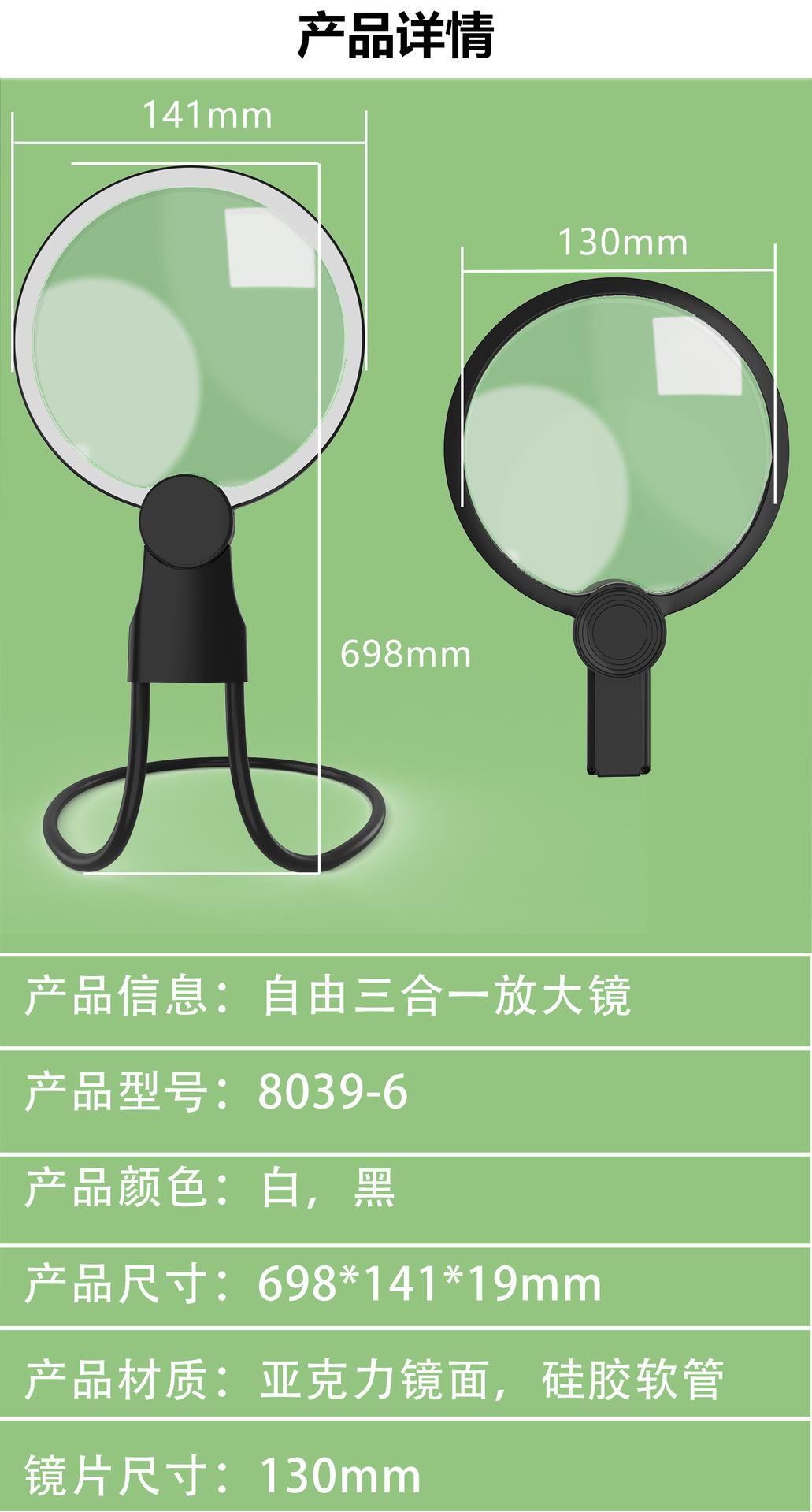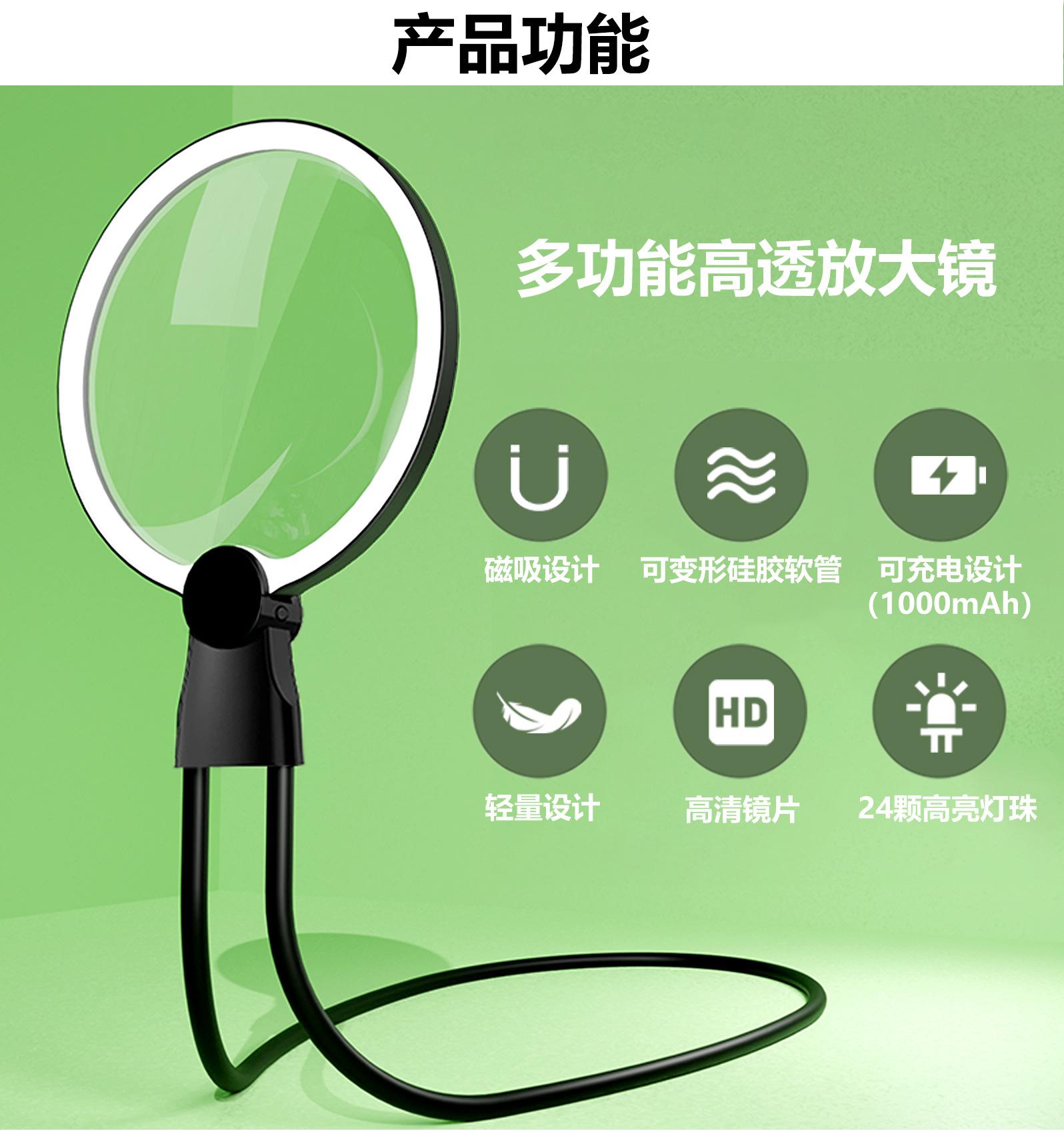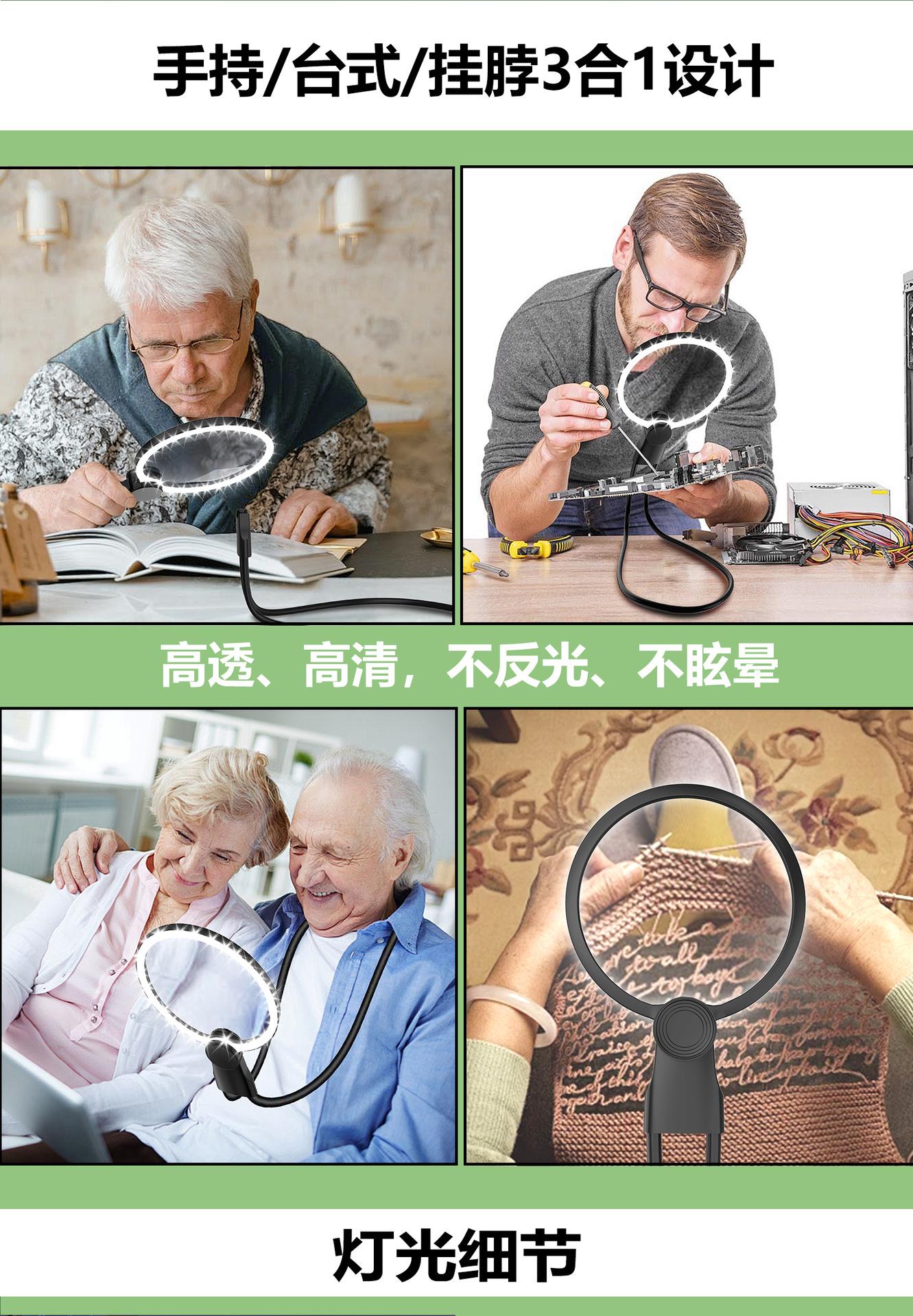 Lupa LED de Escritorio de Cuello de Mano Lupa Acrílica Lupa LED Amazon Venta Caliente