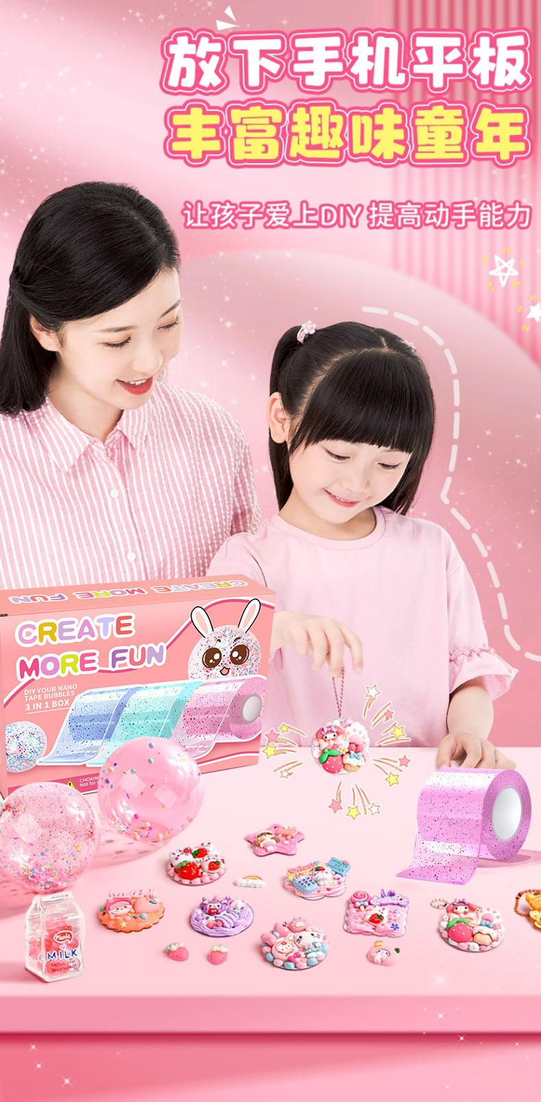 Nano Adhesivo para Niños Pellizco Le Soplado de Burbujas Juego Completo de Paquete de Cinta Adhesiva de Doble Cara Juguete Descompresión Adhesivo Transparente Impermeable Sin Rastro 2