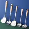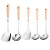 Pala para Saltear de Acero Inoxidable con Mango de Madera Personalizada Regalo Juego de Utensilios de Cocina Mini Cuchara para Sopa Cuchara de Acero Inoxidable Colador Escurridor