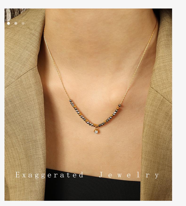 Collar de cadena de suéter de estilo europeo y americano, muy vendido, diseño de moda, temperamento que combina con todo, cadena de clavícula de nicho, circonita, acero de titanio