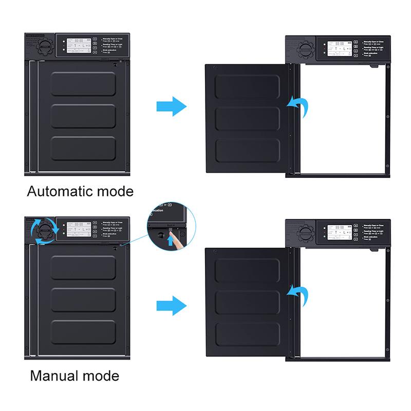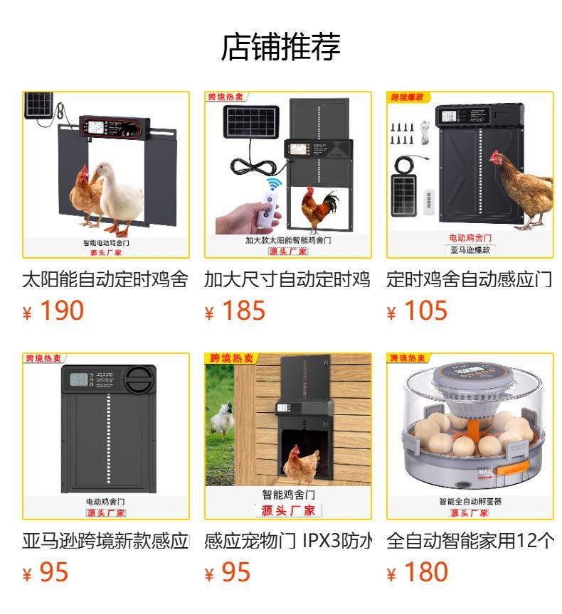 4. Diseño de protección anti-pellizcos: ¡La puerta de nuestro gallinero adopta un diseño anti-pellizcos! Cuando el sensor incorporado detecta una gallina debajo de la puerta, la puerta automática se detendrá para evitar que la gallina se lastime. La puerta continuará cerrándose. No se preocupe por lastimar a las lindas gallinas