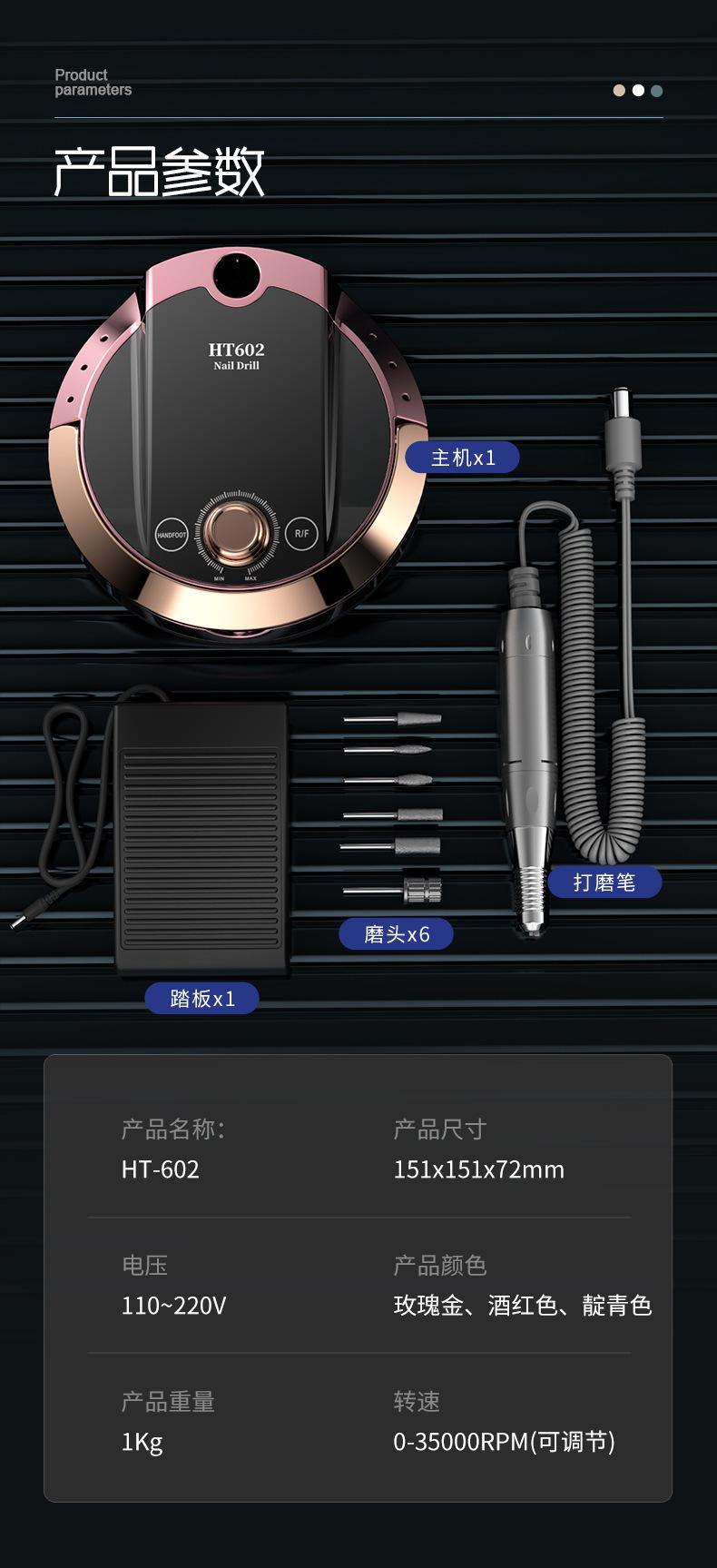 Pulidor de Uñas Nuevo Modelo Transfronterizo para Uso Doméstico Ht602 Pulidor de Uñas Portátil, Removedor de Uñas Eléctrico Especial para Manicura