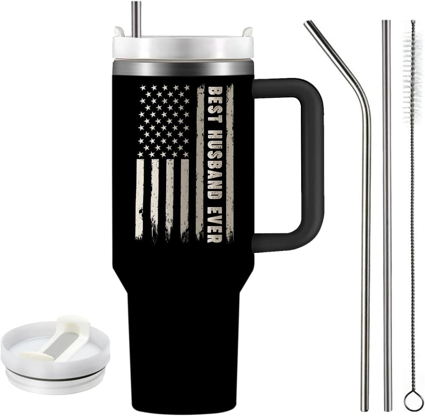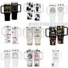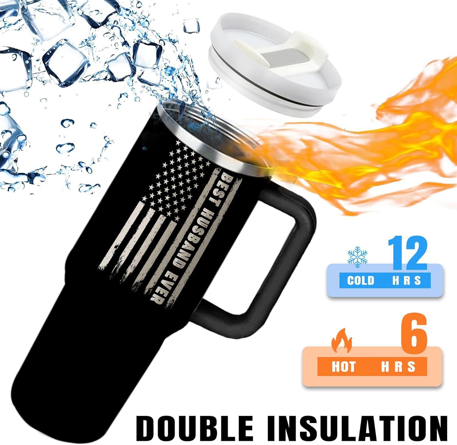 Vaso de hielo con asa de 40 oz de segunda generación, de acero inoxidable 304, con impresión de imagen DIY, con aislamiento de doble capa, para auto.