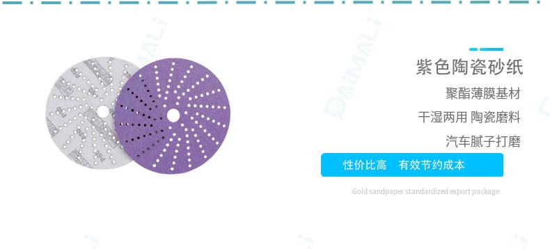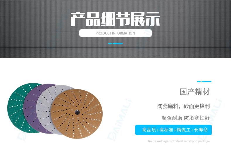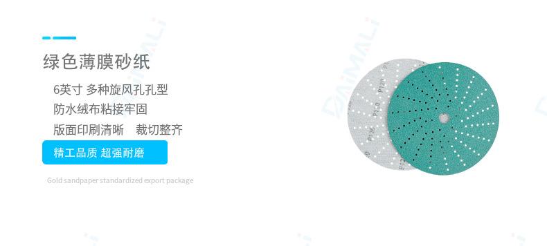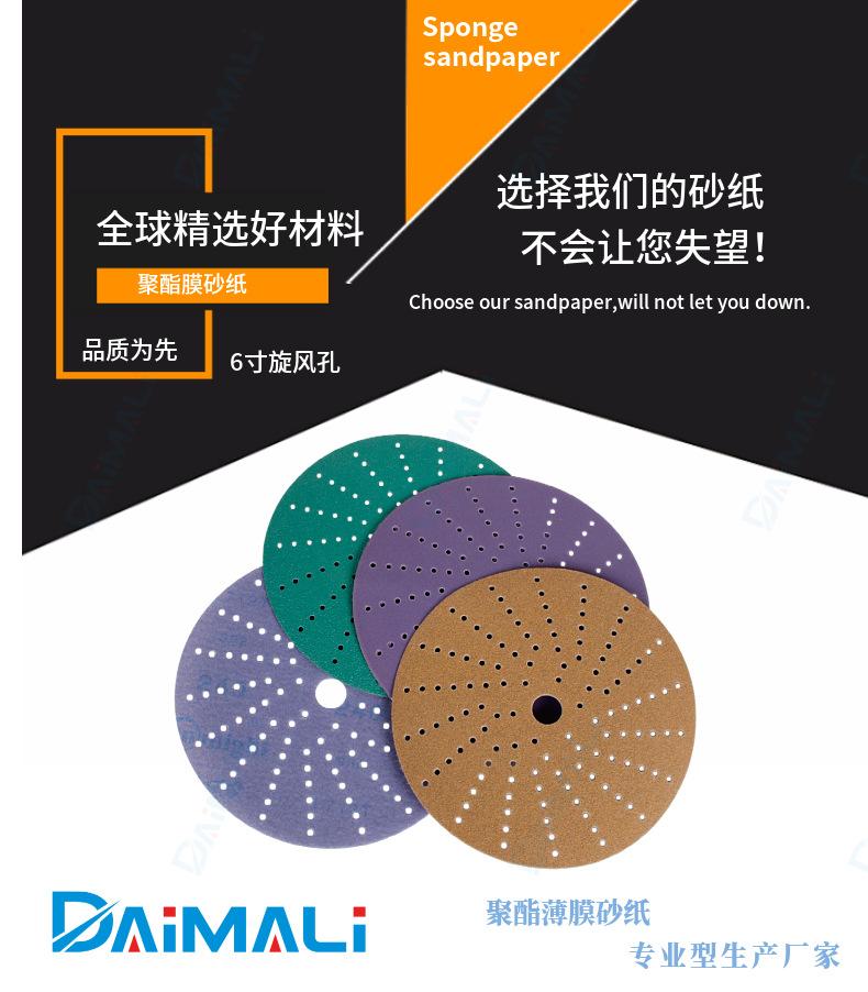 Papel de lija flocado verde, morado y dorado con orificio ciclónico de 150 mm y 6 pulgadas, para pulir automóviles transfronterizos.