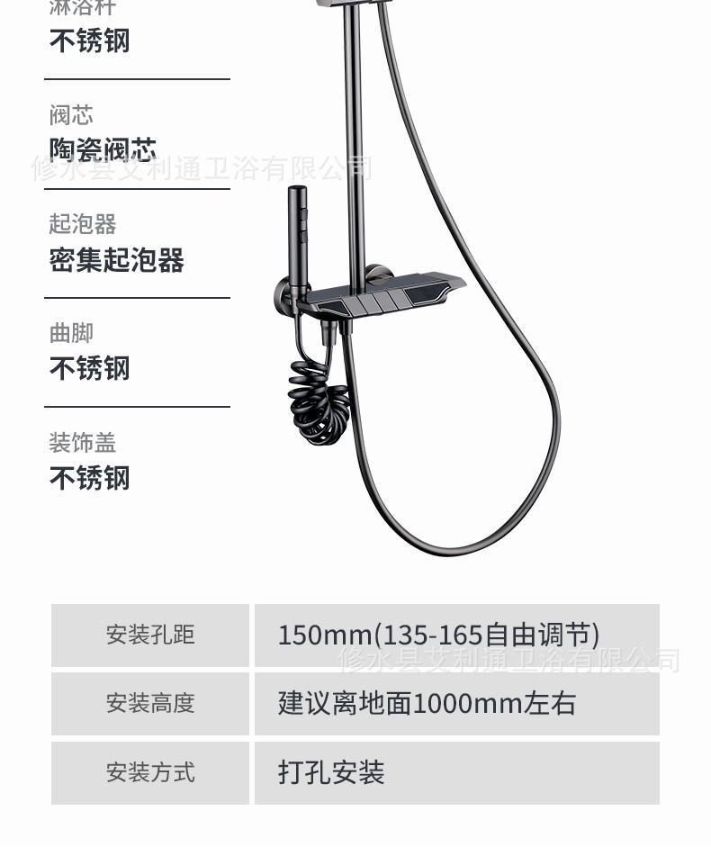 Gun gray line ambient light shower set, Space aluminum 4-speed ambient light shower head, Space aluminum c846 ...