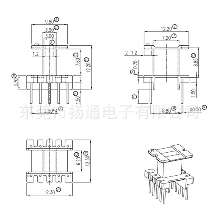 1. Imagen física/tamaño de la bobina del bastidor del transformador: