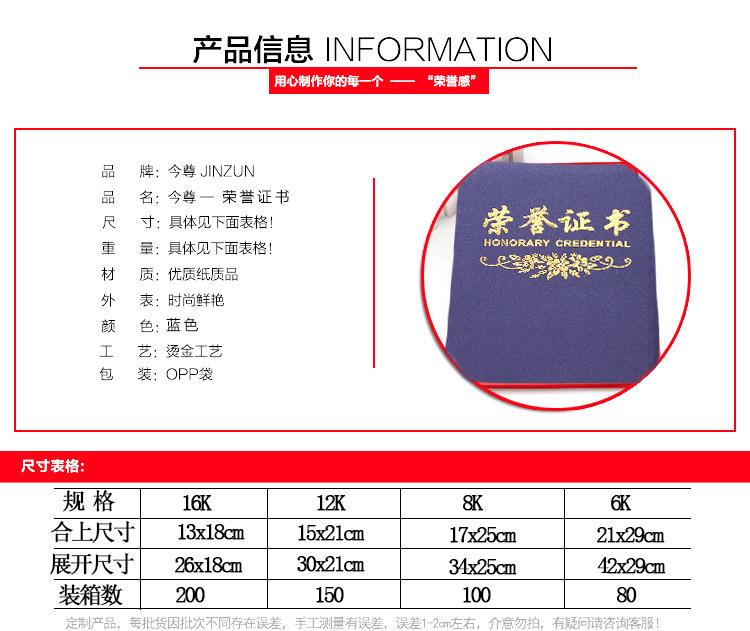 Certificado de honor azul al por mayor de fábrica, cubierta de carcasa, certificado escolar, premio, certificado de premio al por mayor
