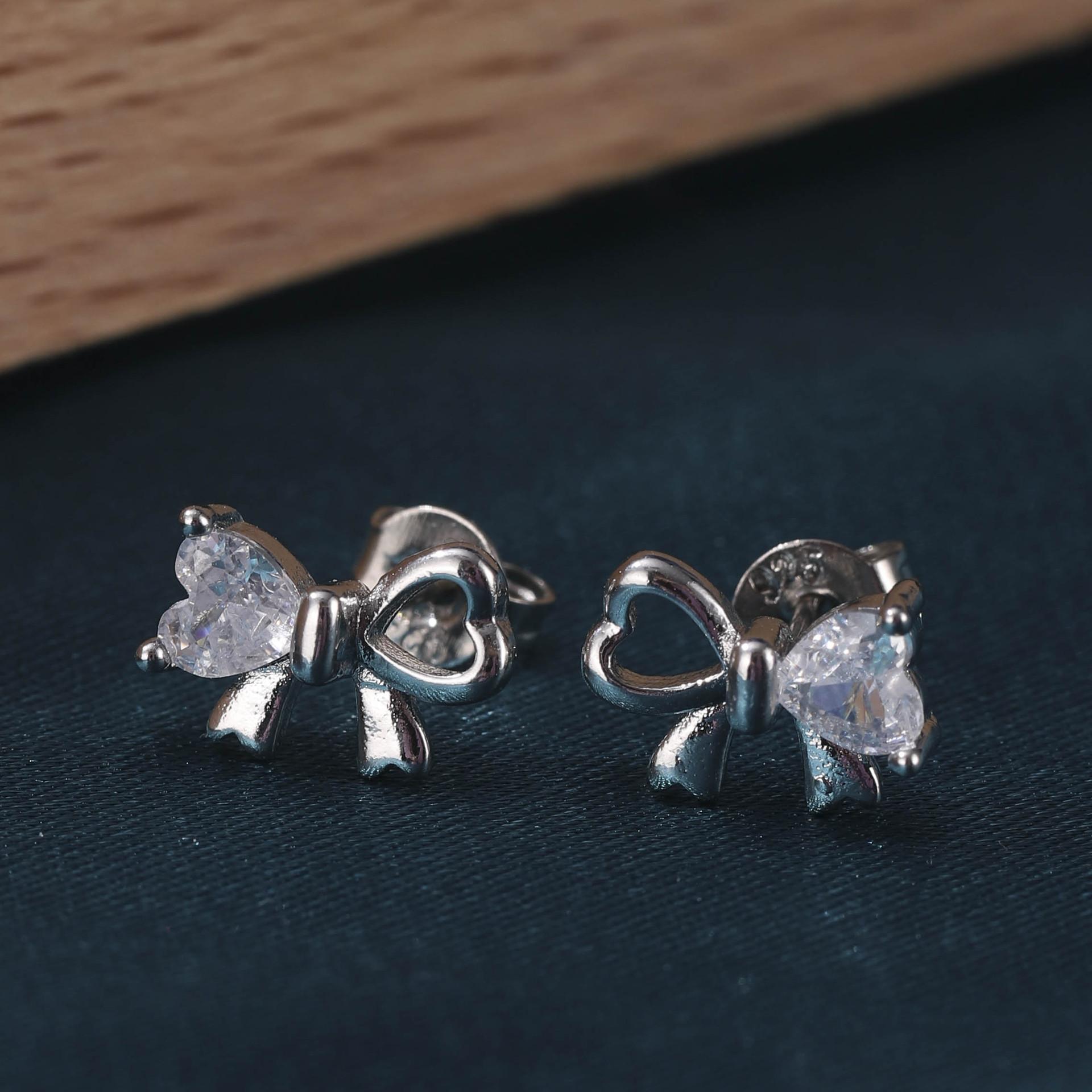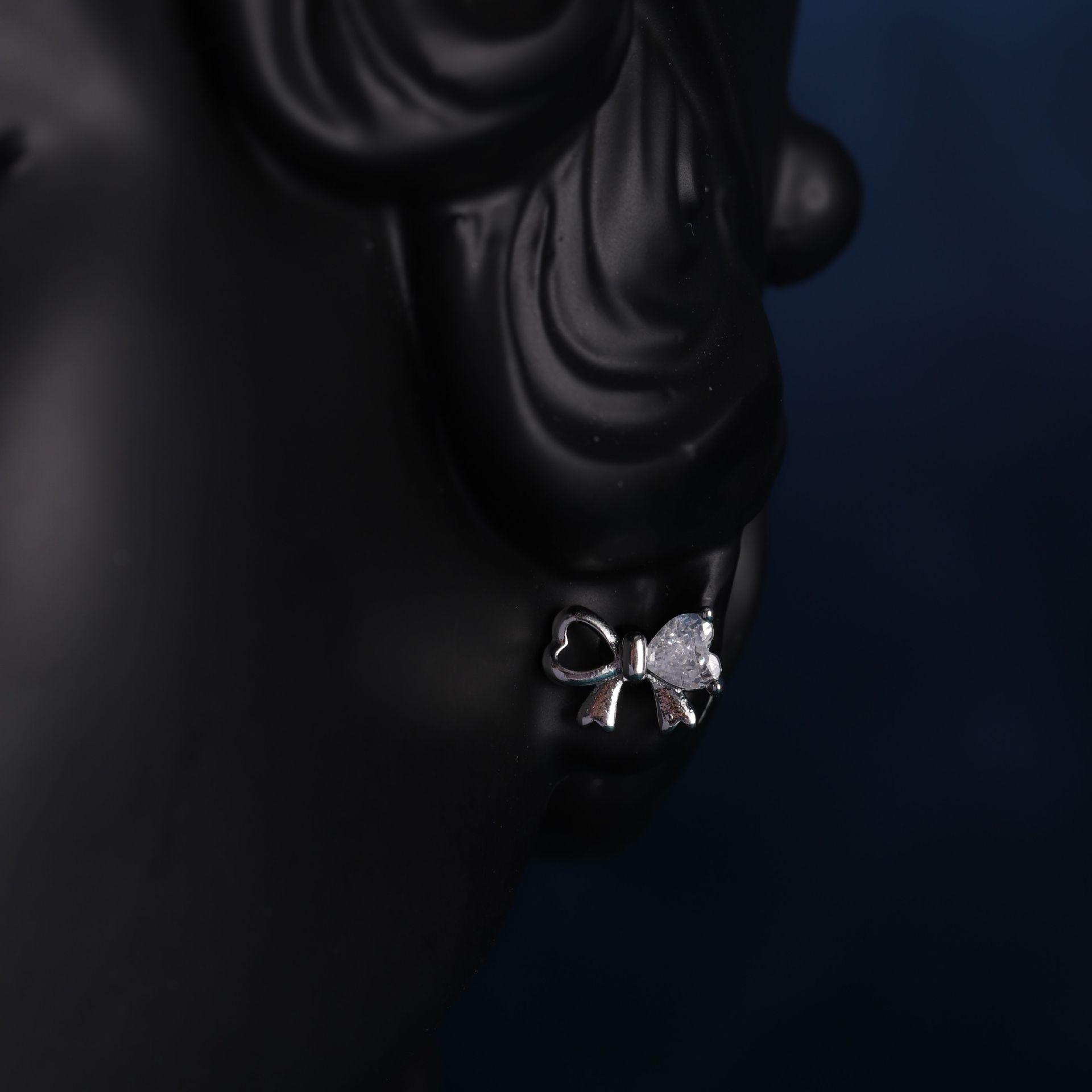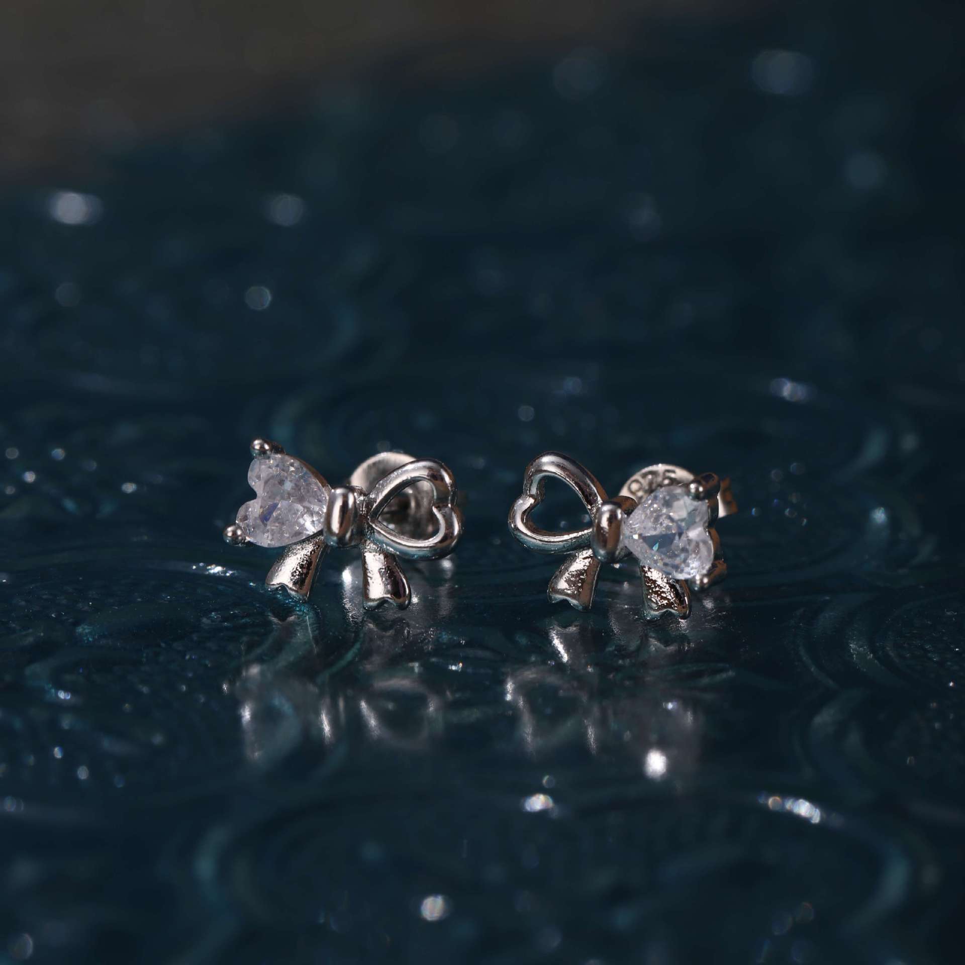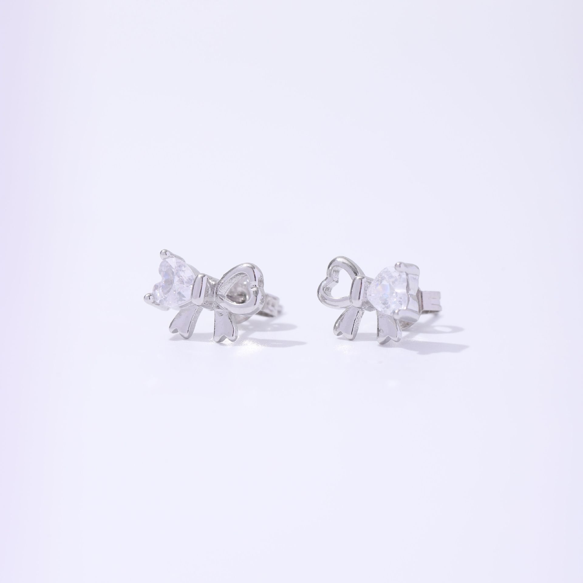Aretes Simples en Forma de Corazón Estilo Coreano con Lazo Hueco, Aretes de Tuerca Dulces y Elegantes, Mini Accesorios para Orejas Lindos