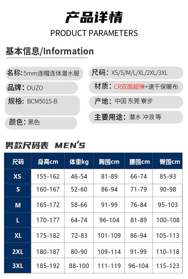 OUZO nuevo traje de buceo de 5 mm CR superelástico de una pieza engrosado a prueba de frío y cálido buceo libre surf natación de invierno traje de buceo