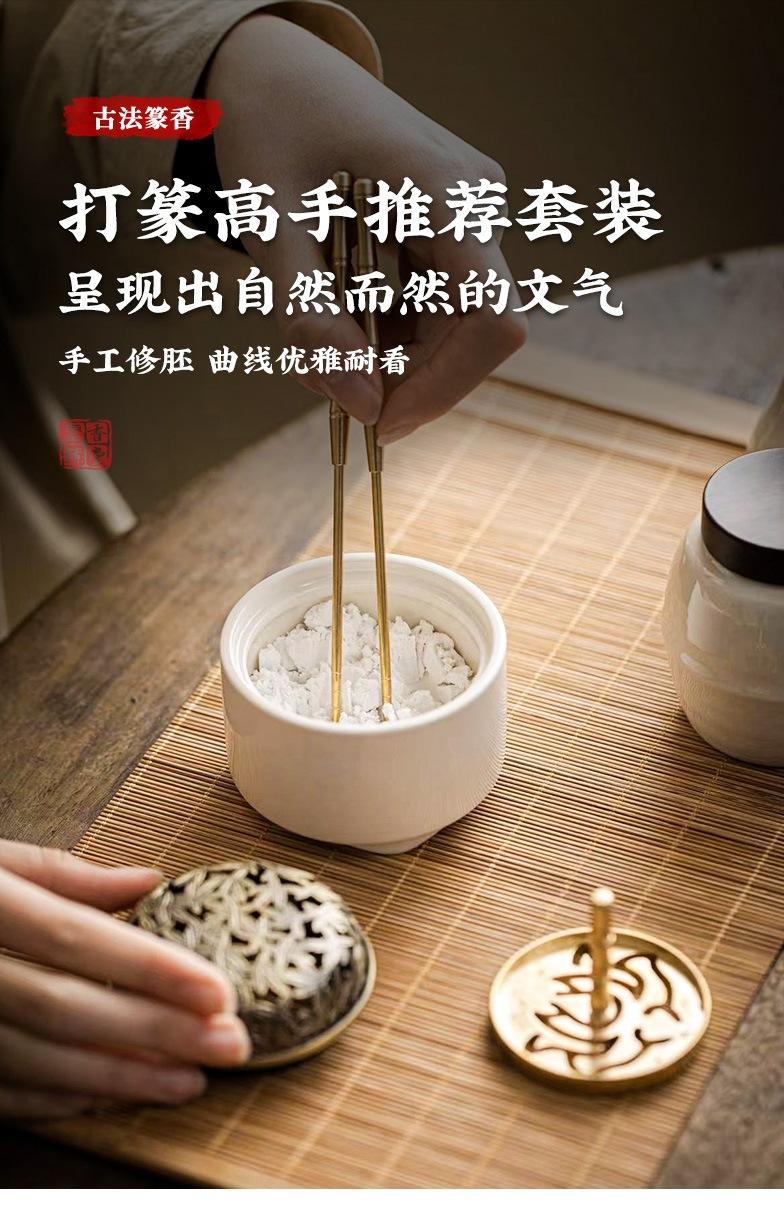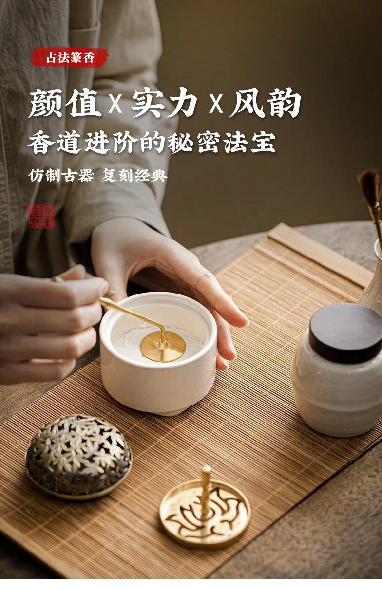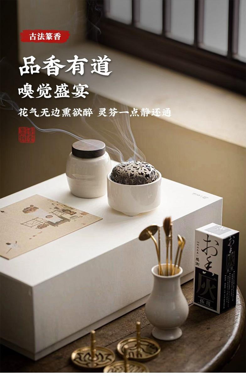 Compra Set de sellos de fragancia de ceniza de planta de cerámica, caja de regalo, regalo de fragancia, canal de fragancia de ceniza, accesorios de cobre, adornos para la ceremonia del té. al por mayor en Joom.pro