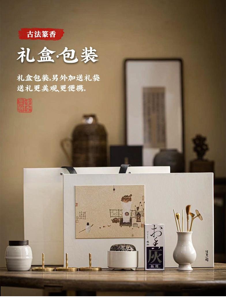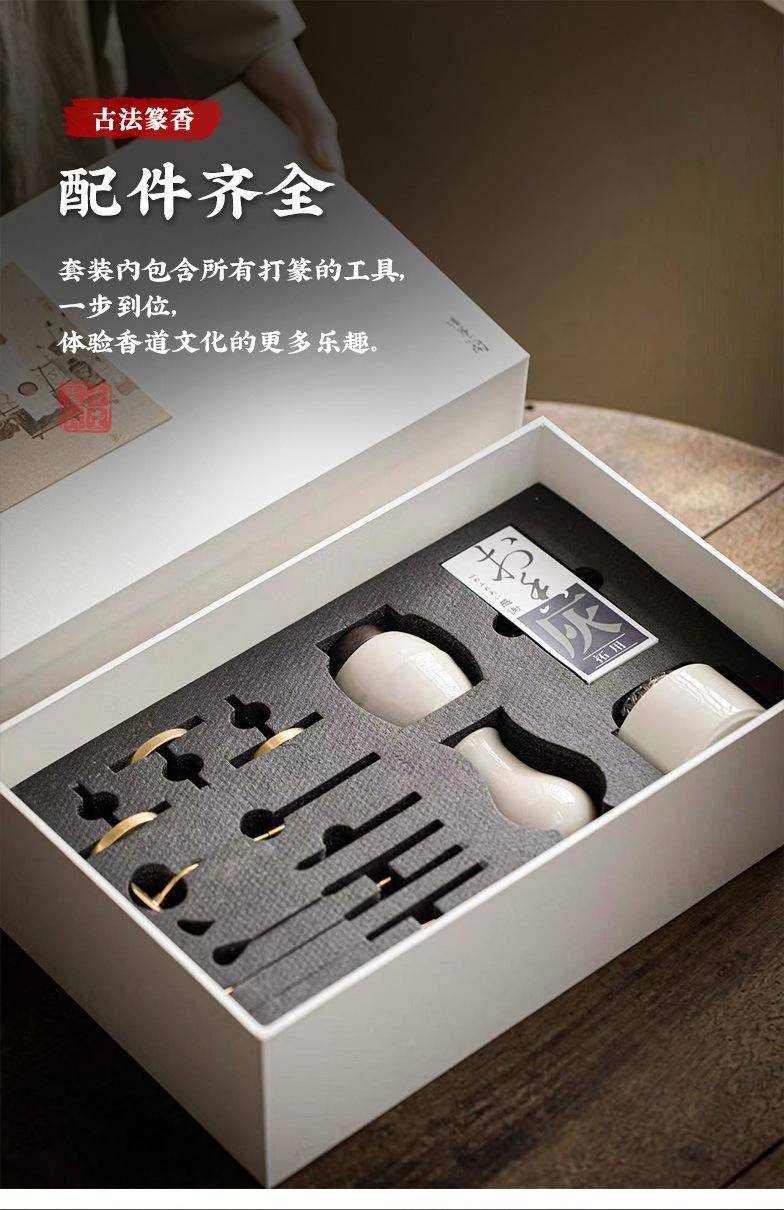 Set de sellos de fragancia de ceniza de planta de cerámica, caja de regalo, regalo de fragancia, canal de fragancia de ceniza, accesorios de cobre, adornos para la ceremonia del té.
