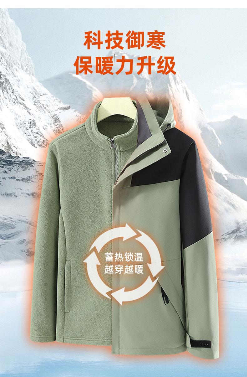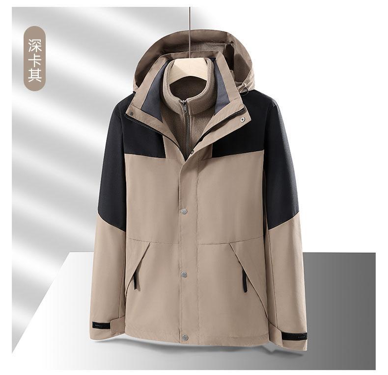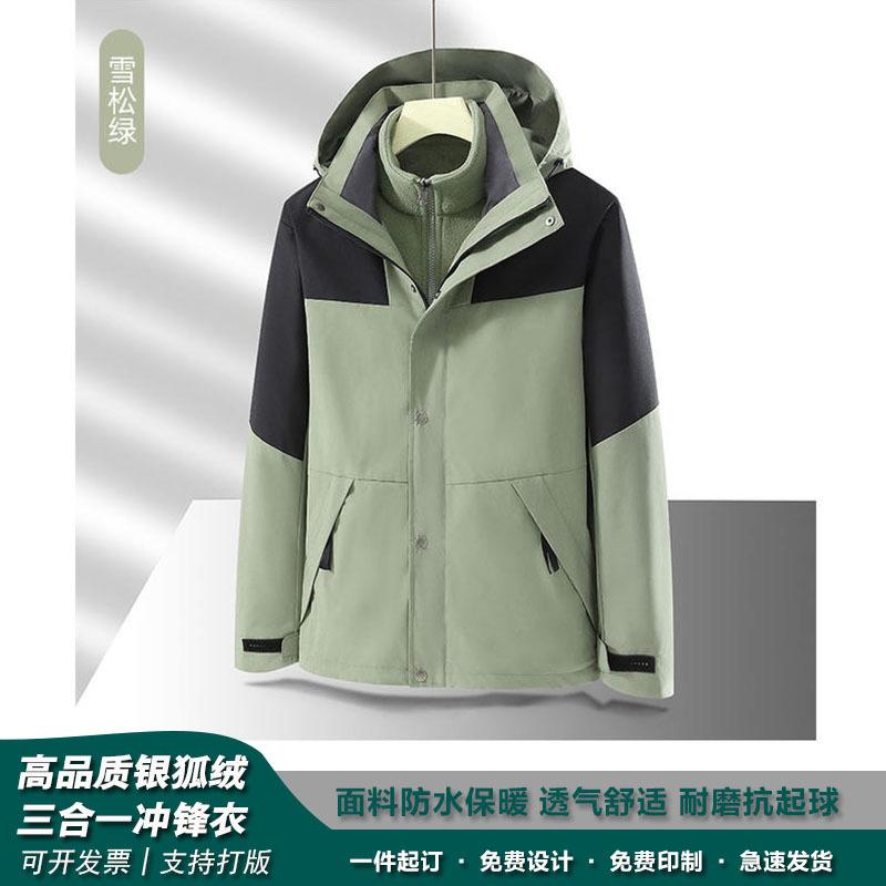 Abrigo impermeable grueso con forro polar desmontable, tres en uno, con impresión de logotipo para ropa de asalto al aire libre, directo de fábrica, para otoño e invierno.