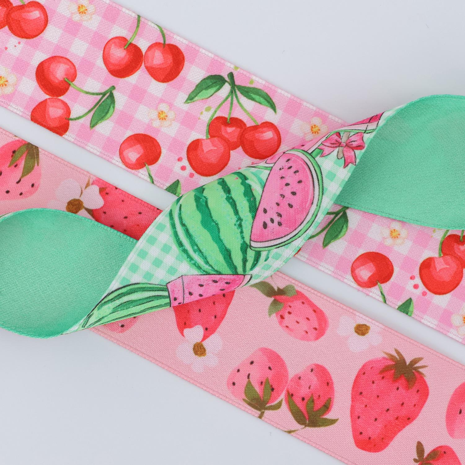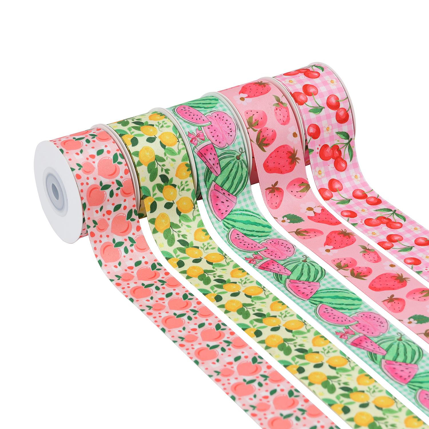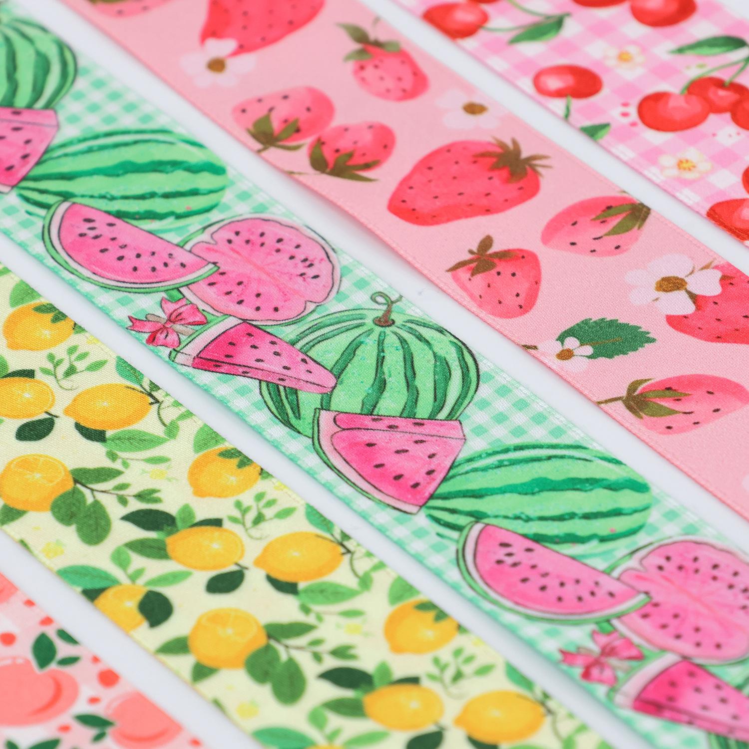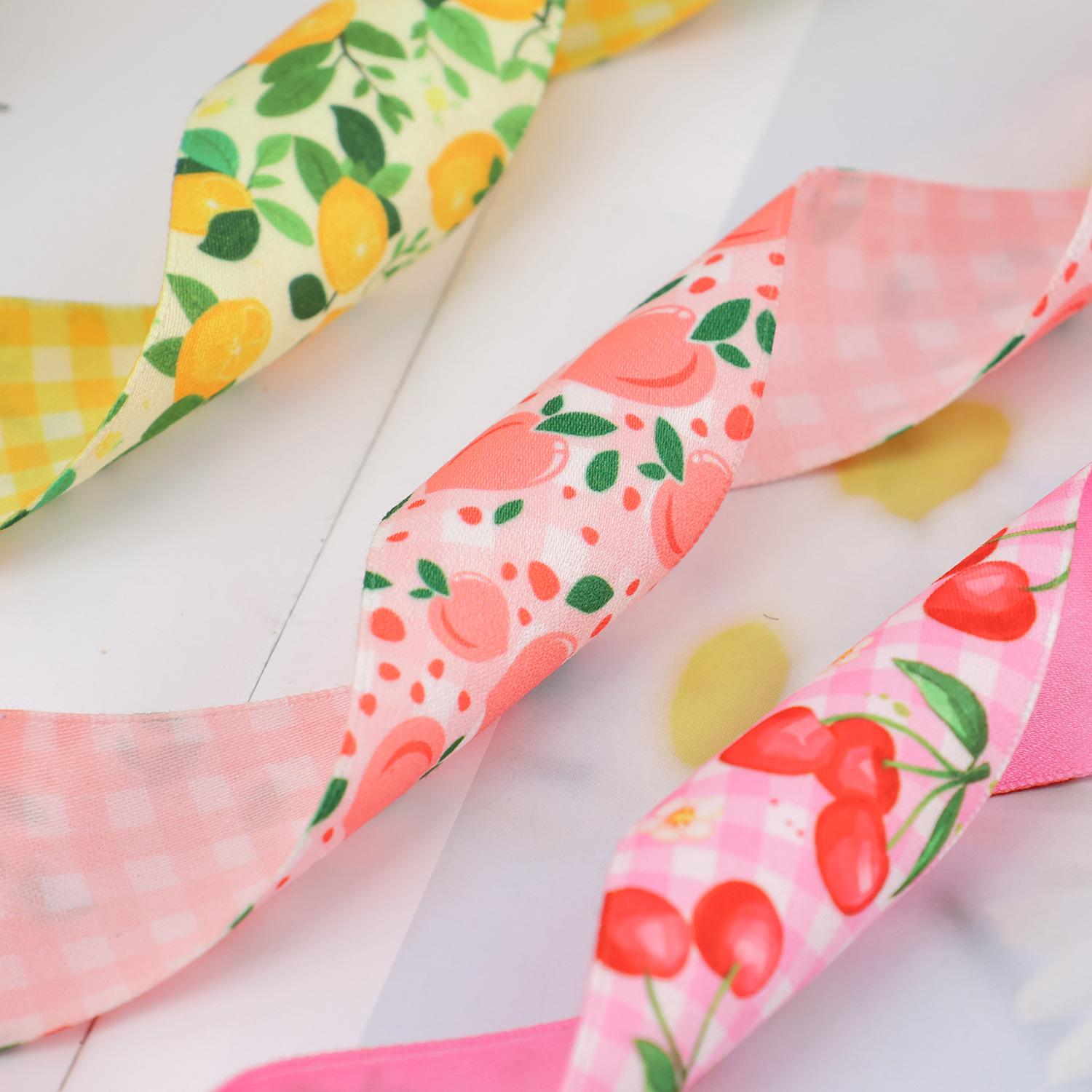 Cinta de poliéster-algodón personalizada, cinta de transferencia térmica de doble cara, accesorios para el cabello, lazo de regalo hecho a mano, cinta con estampado de frutas