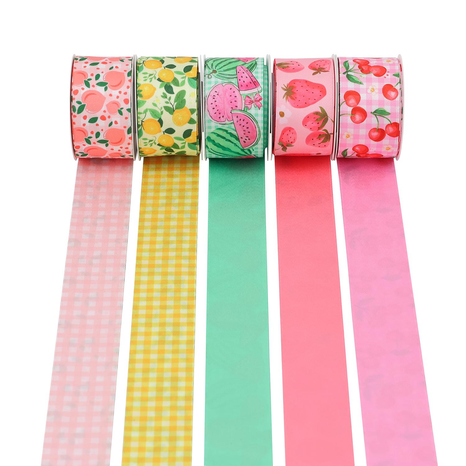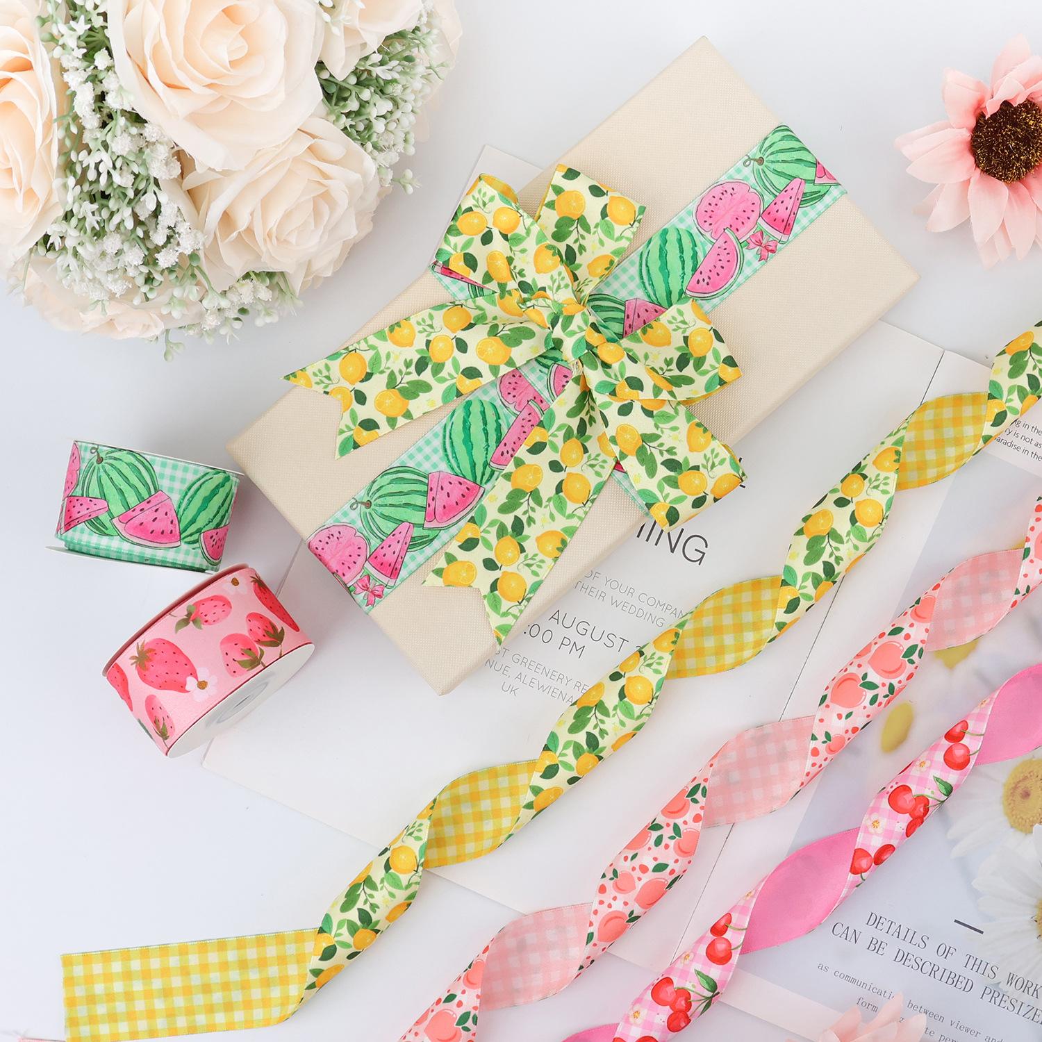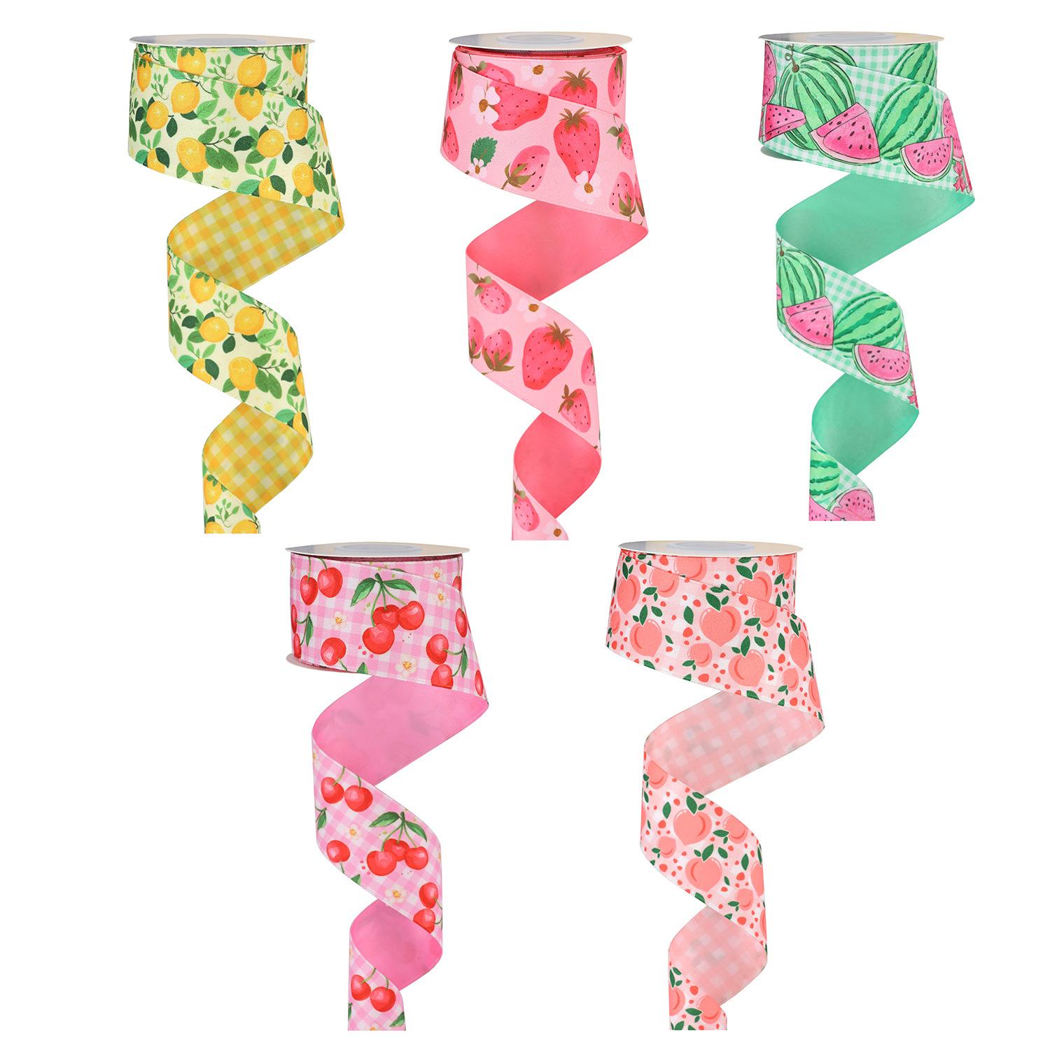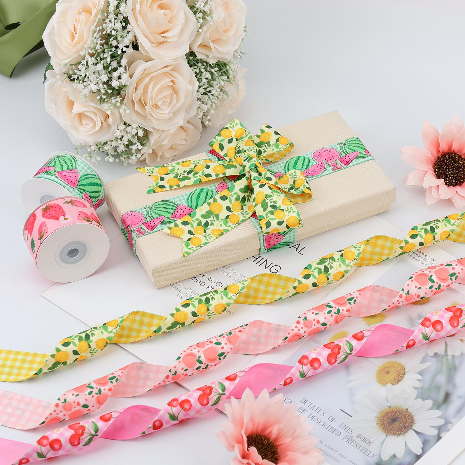 Cinta de poliéster-algodón personalizada, cinta de transferencia térmica de doble cara, accesorios para el cabello, lazo de regalo hecho a mano, cinta con estampado de frutas