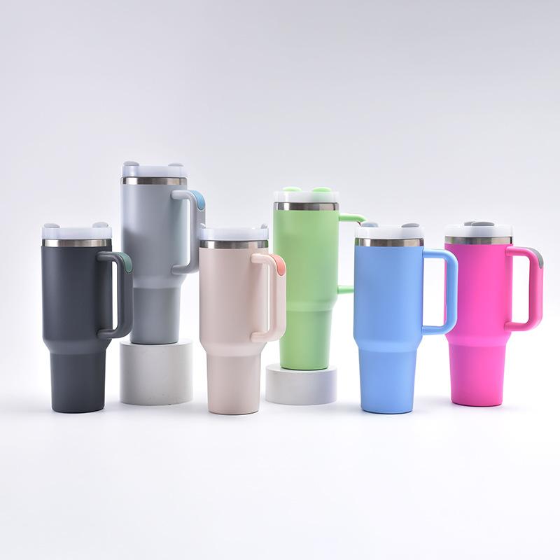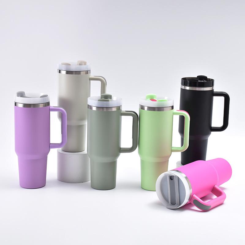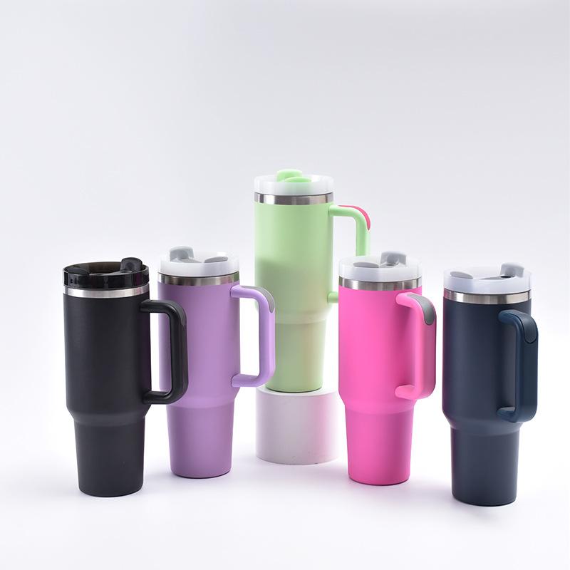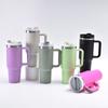 Suministro directo transfronterizo Vaso para helado de 40 oz de segunda generación de gran capacidad para mantener el frío Vaso al vacío con popote Vaso para coche de acero inoxidable con asa