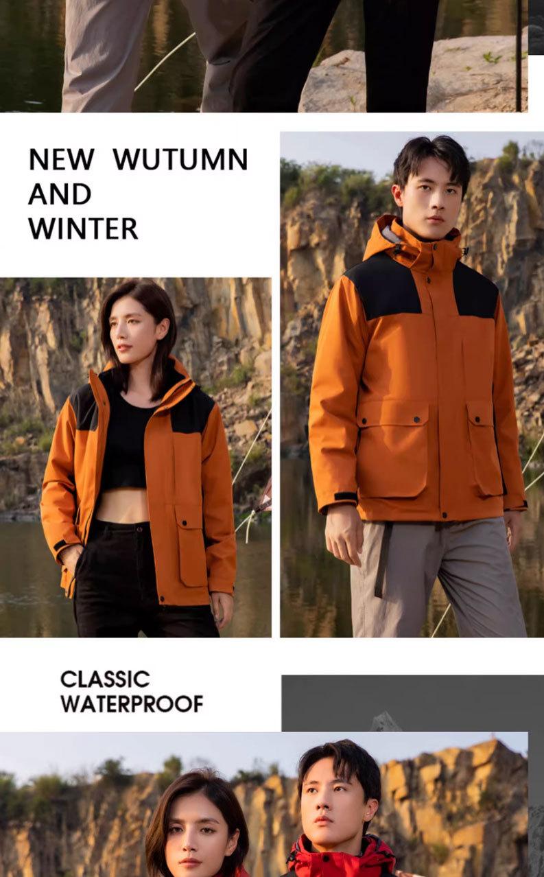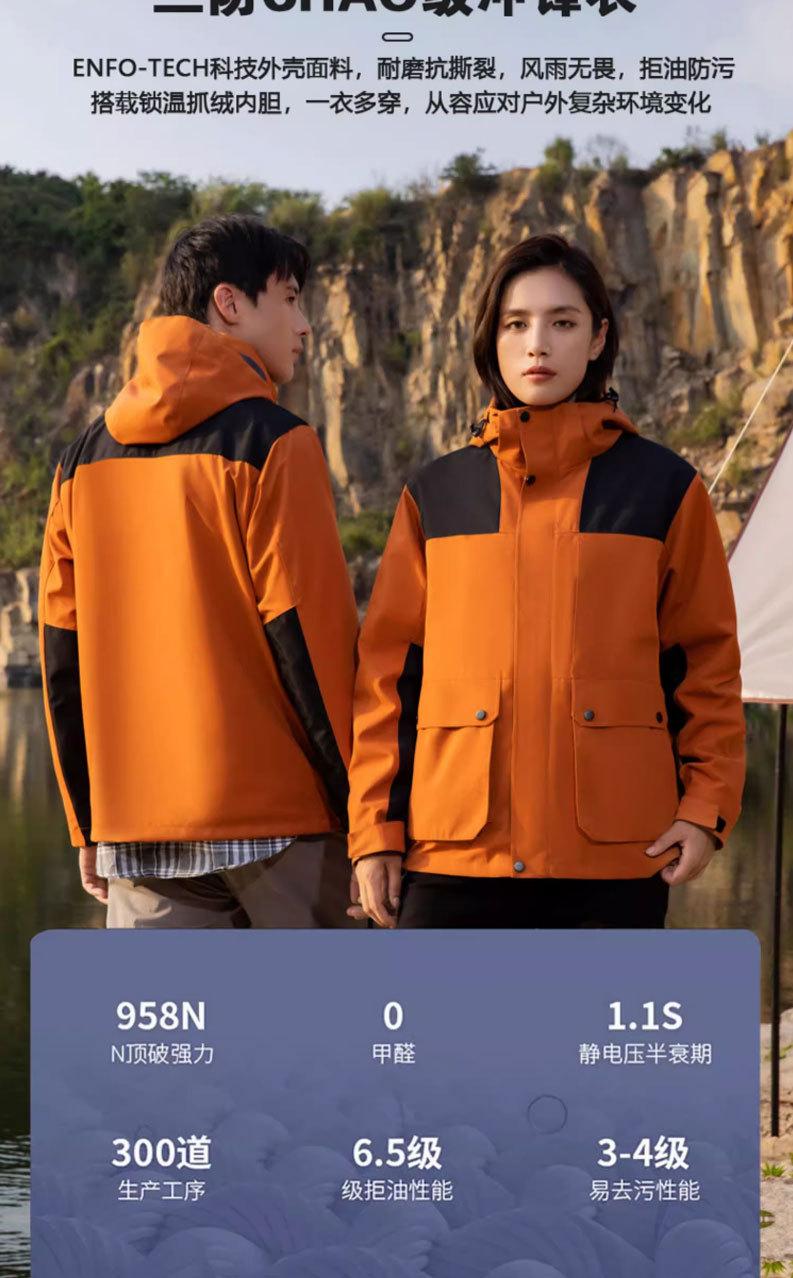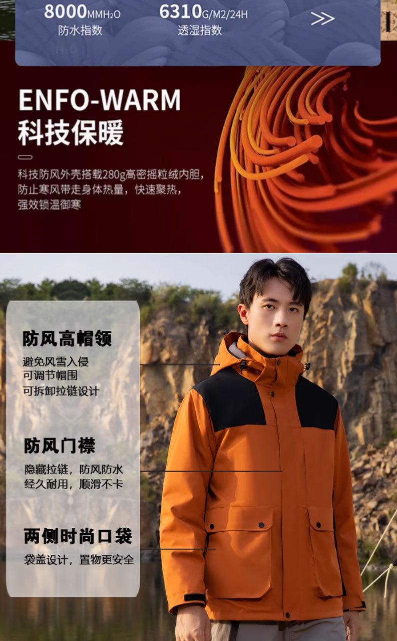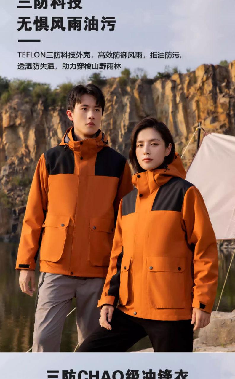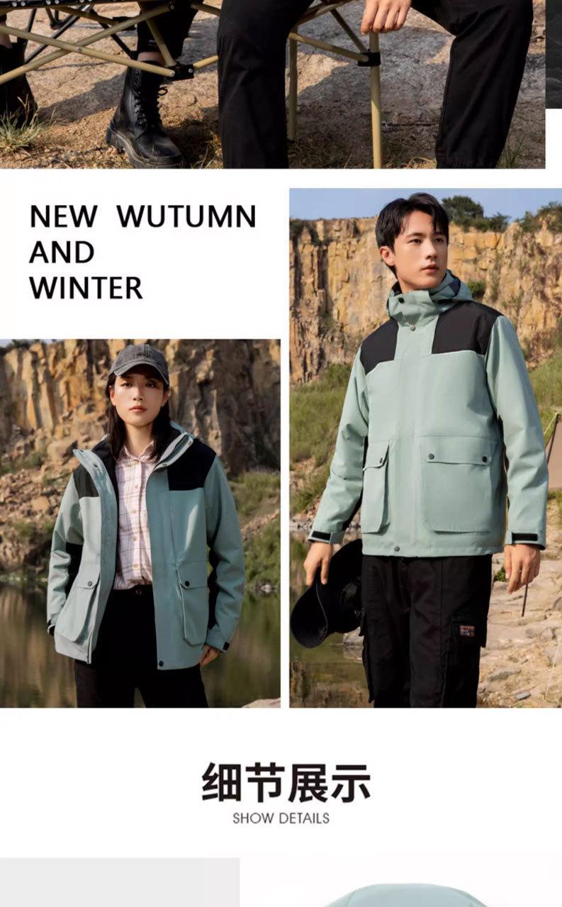 Chaqueta de invierno para exteriores tres en uno con logotipo estampado personalizado, bordado, ropa de grupo, agente de conducción, ropa de trabajo, gabardina para hombres y mujeres