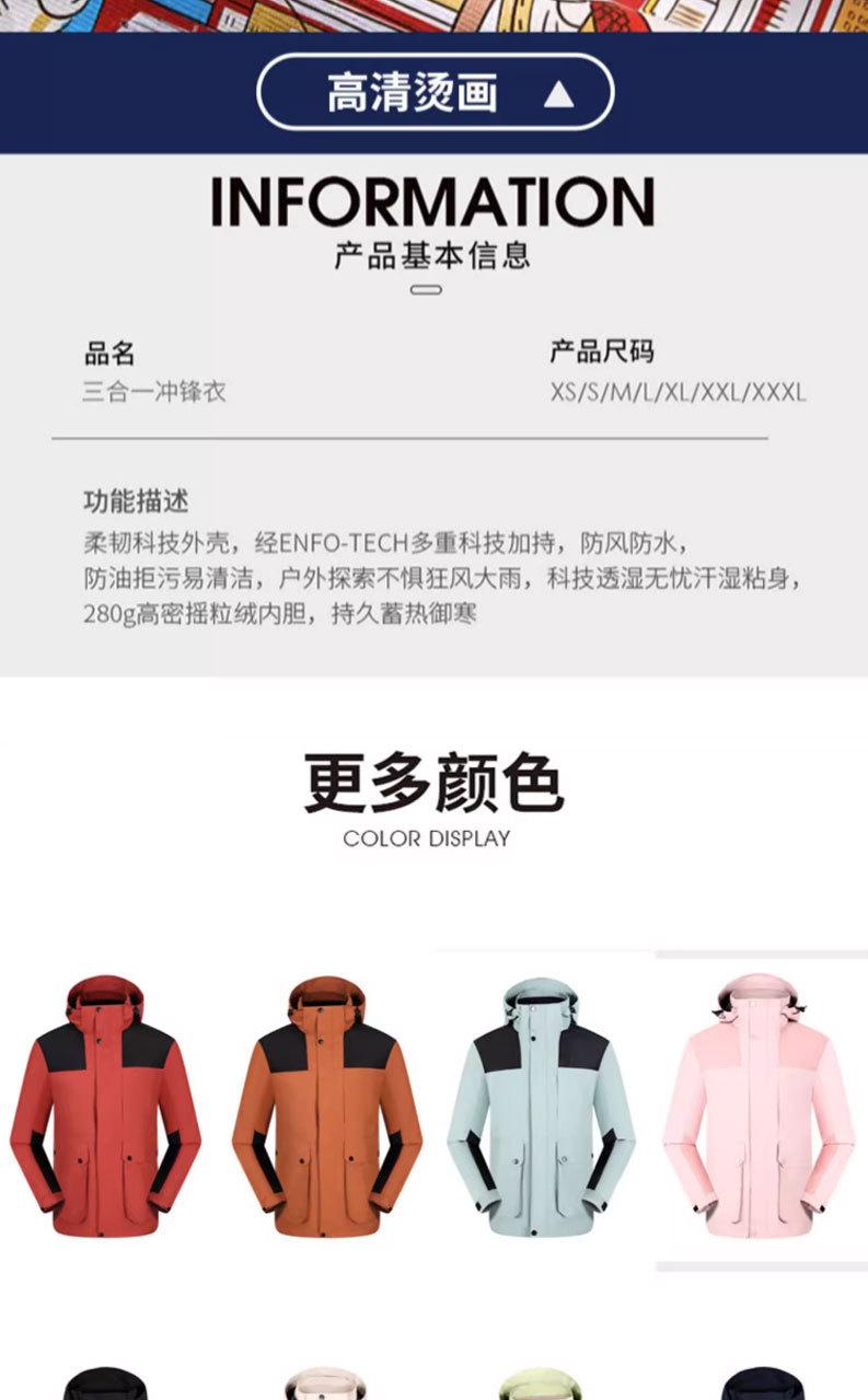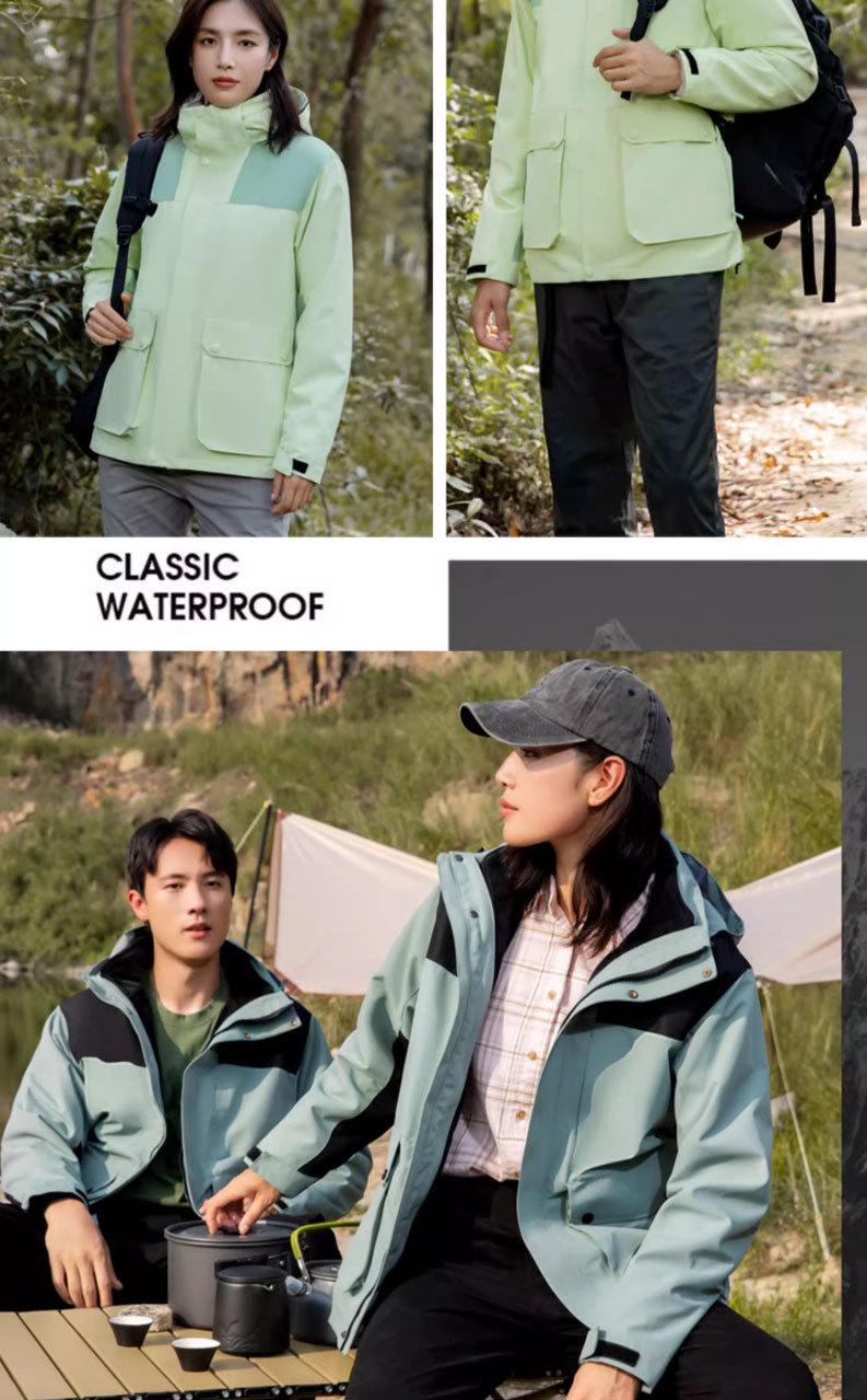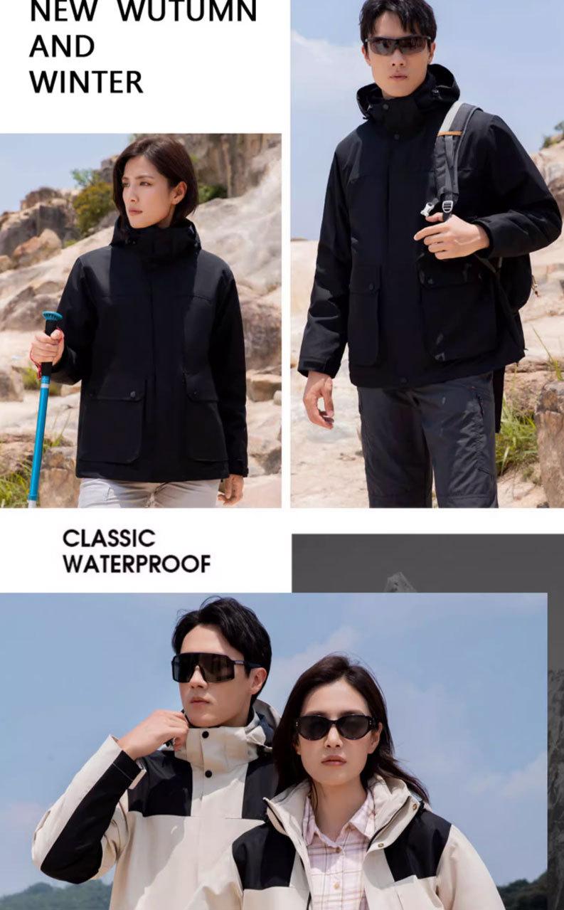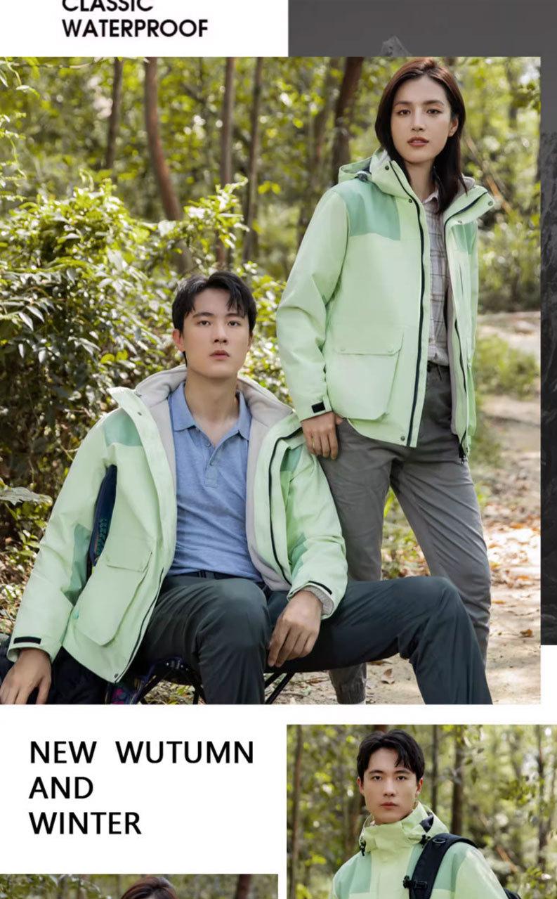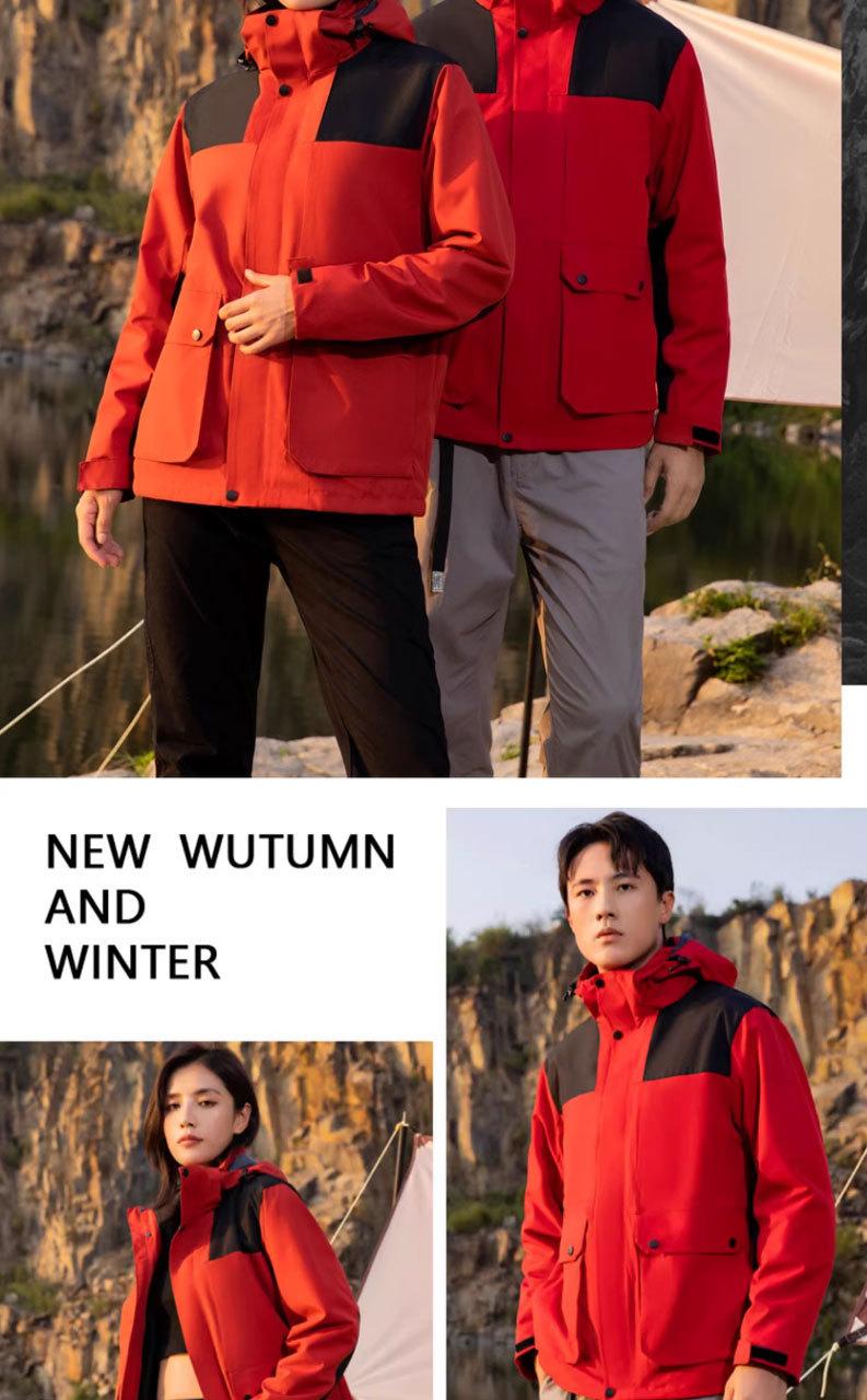 Chaqueta de invierno para exteriores tres en uno con logotipo estampado personalizado, bordado, ropa de grupo, agente de conducción, ropa de trabajo, gabardina para hombres y mujeres