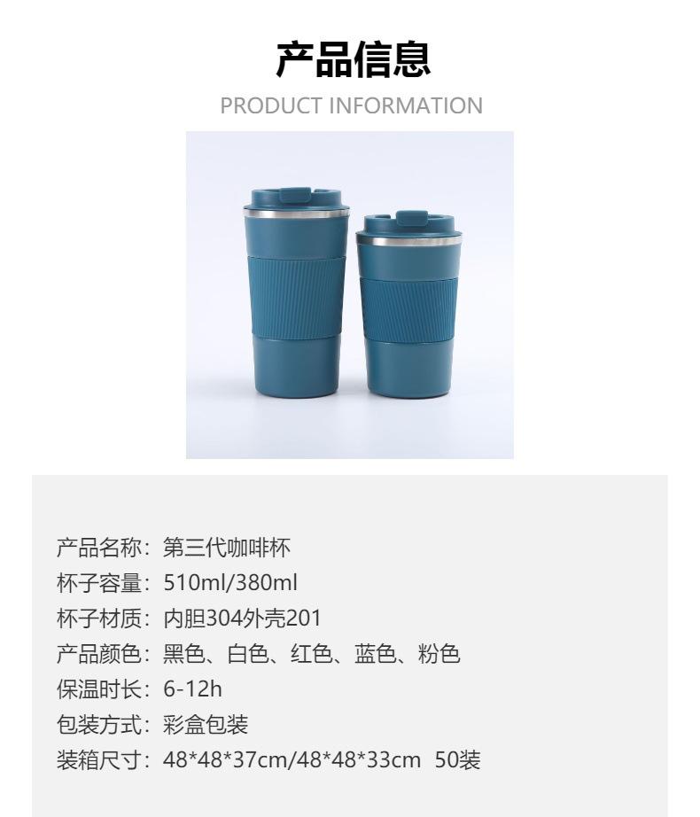 Nueva taza de café de silicona americana de tres generaciones, taza de agua portátil para automóvil, taza de agua con aislamiento de acero inoxidable 304 para el hogar y la oficina