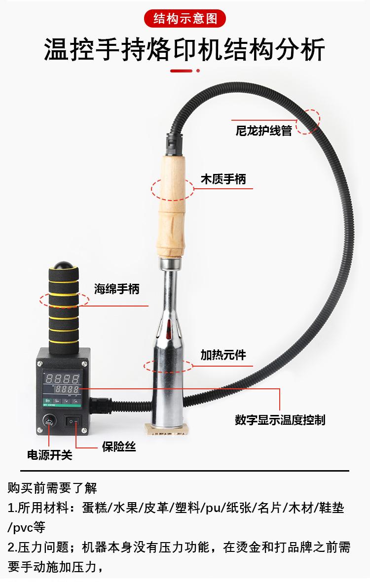 [Zhengfei] Máquina de marcado manual con pantalla digital y control por cable, para madera y cuero, para alimentos, pan y marcas comerciales.