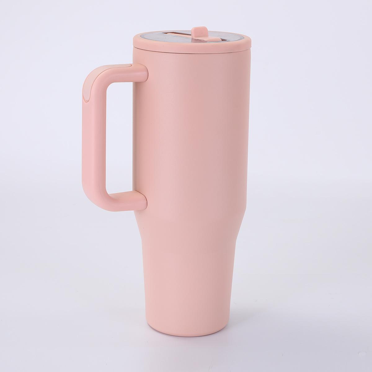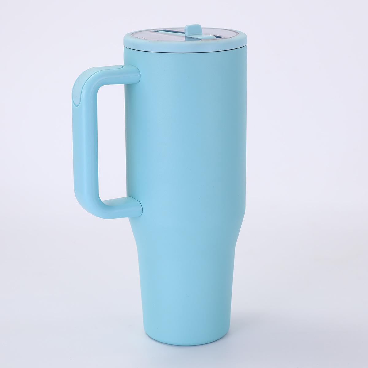 Vaso para coche de 40 oz con asa transfronterizo, acero inoxidable 304, termo con pajita, gran capacidad, vaso para frío/hielo, venta al por mayor