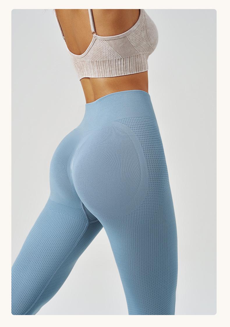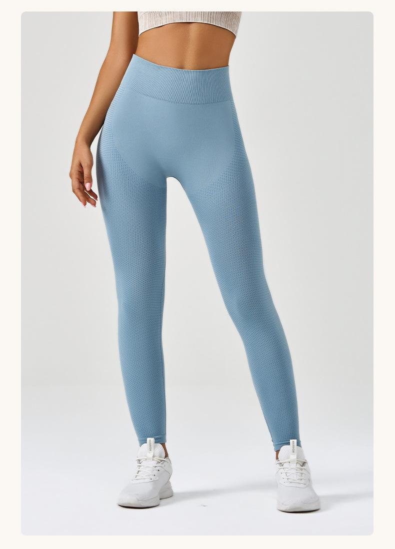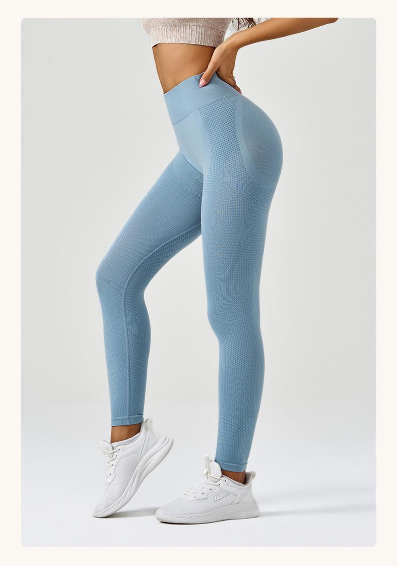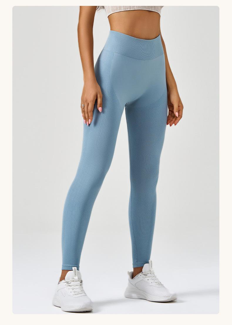 Pantalones de yoga deportivos para correr y fitness, de cintura alta, con control del vientre, de jacquard, de color puro, de punto sin costuras, transfronterizos, europeos y americanos.