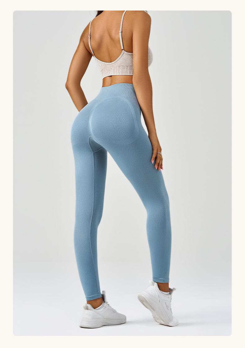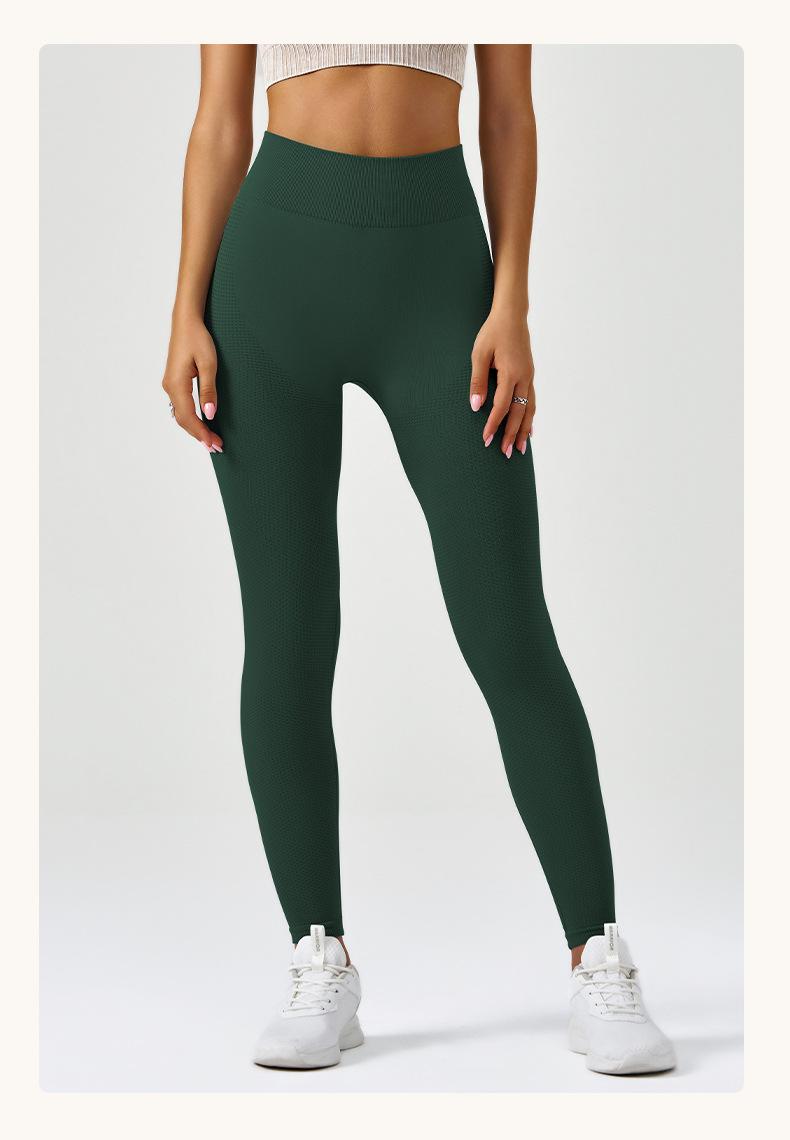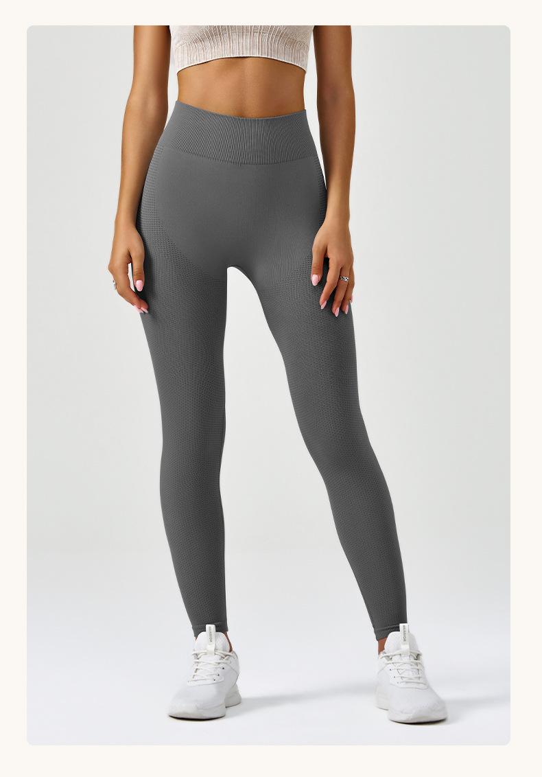 Pantalones de yoga deportivos para correr y fitness, de cintura alta, con control del vientre, de jacquard, de color puro, de punto sin costuras, transfronterizos, europeos y americanos.