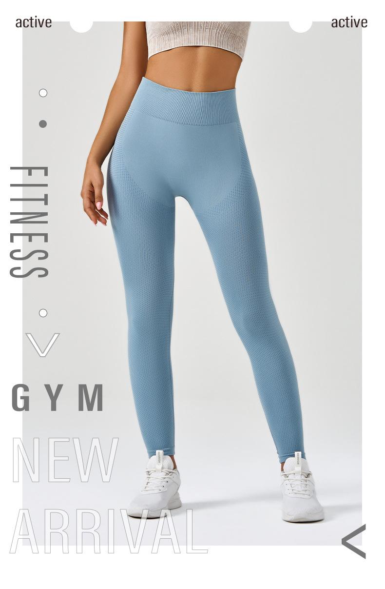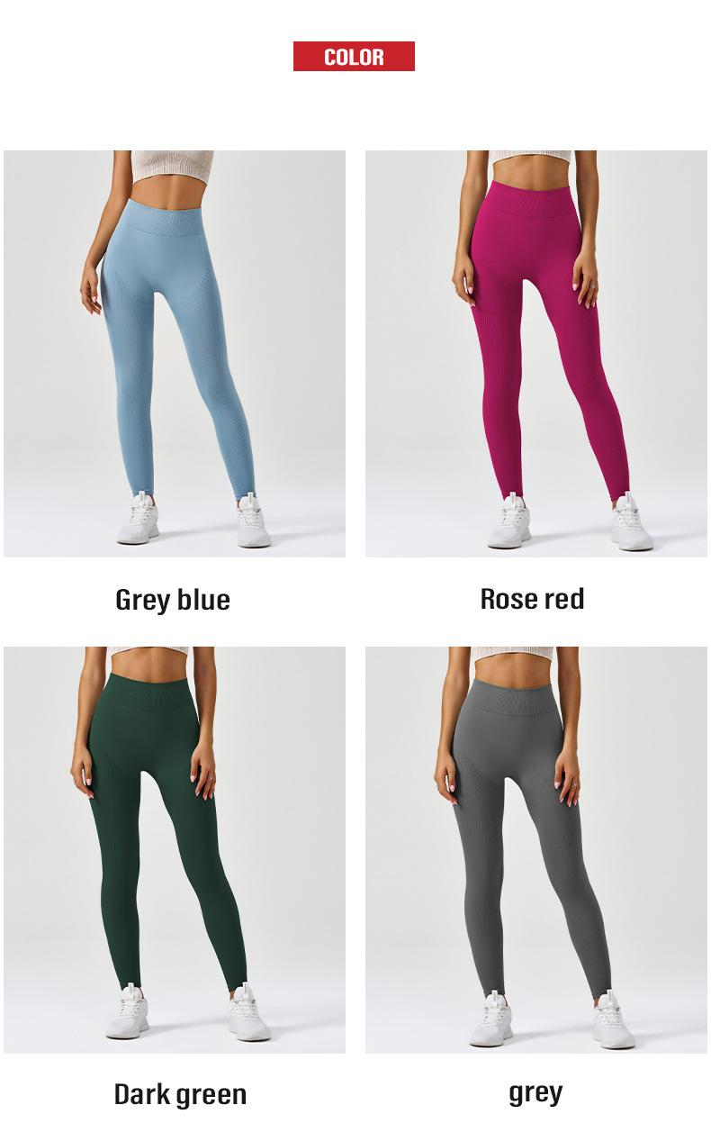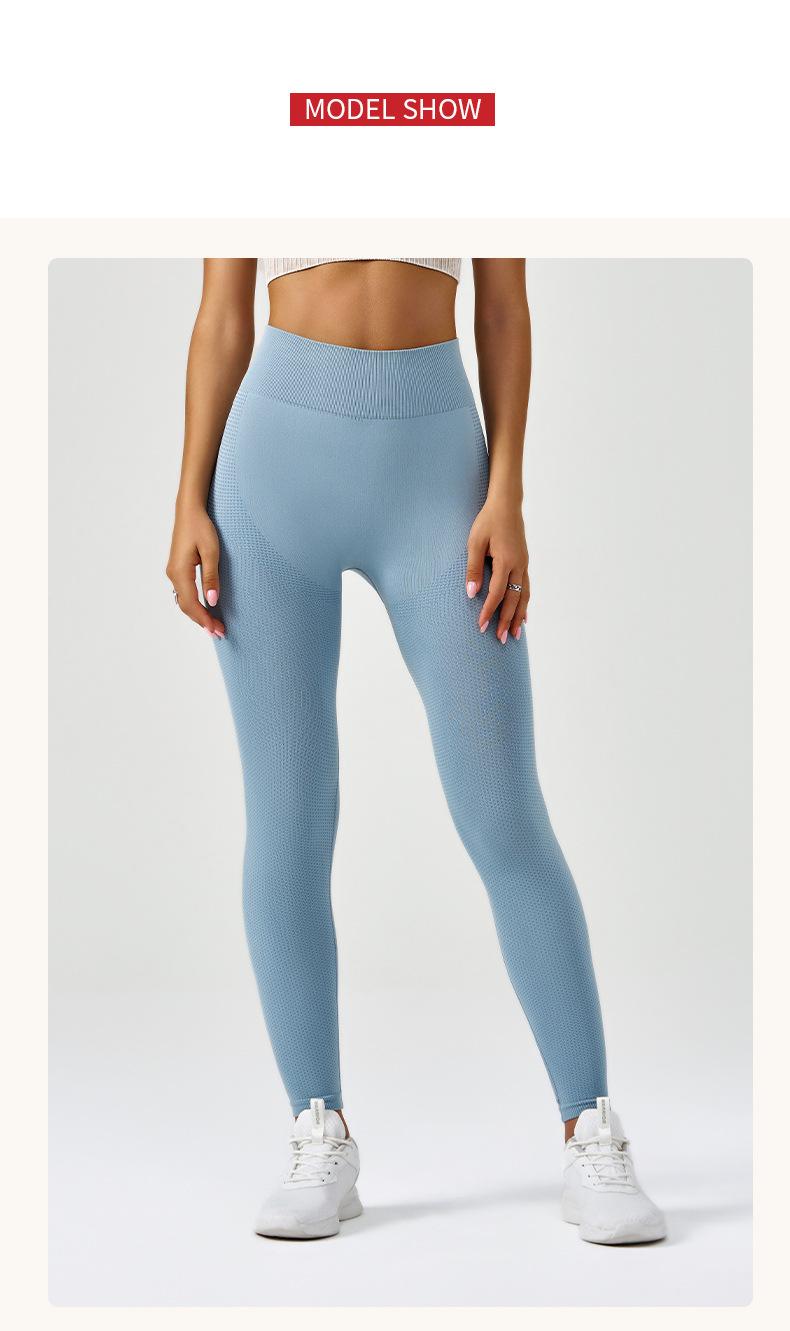 Compra Pantalones de yoga deportivos para correr y fitness, de cintura alta, con control del vientre, de jacquard, de color puro, de punto sin costuras, transfronterizos, europeos y americanos. al por mayor en Joom.pro
