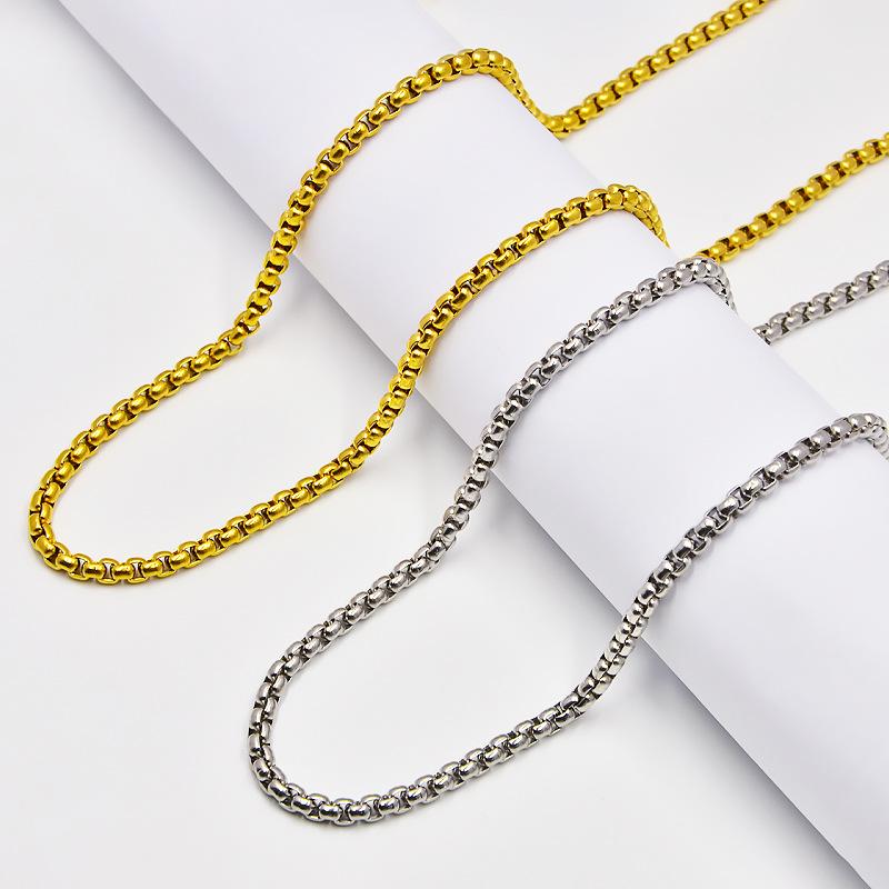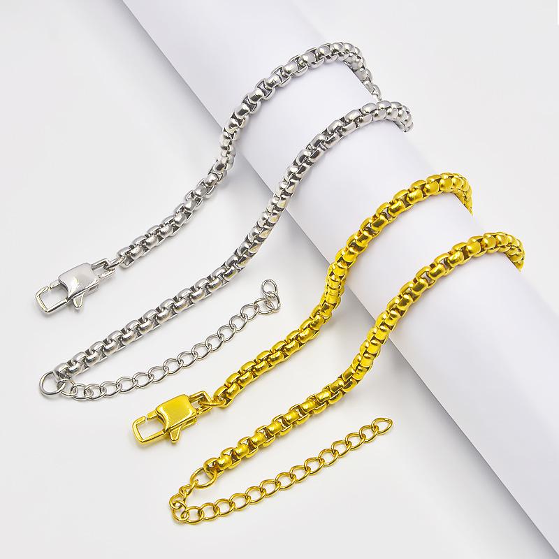 Bracelet gold 18-22cm, Bracelet steel color 18-22cm, Necklace gold 40-55cm, Necklace steel color 40-55cm