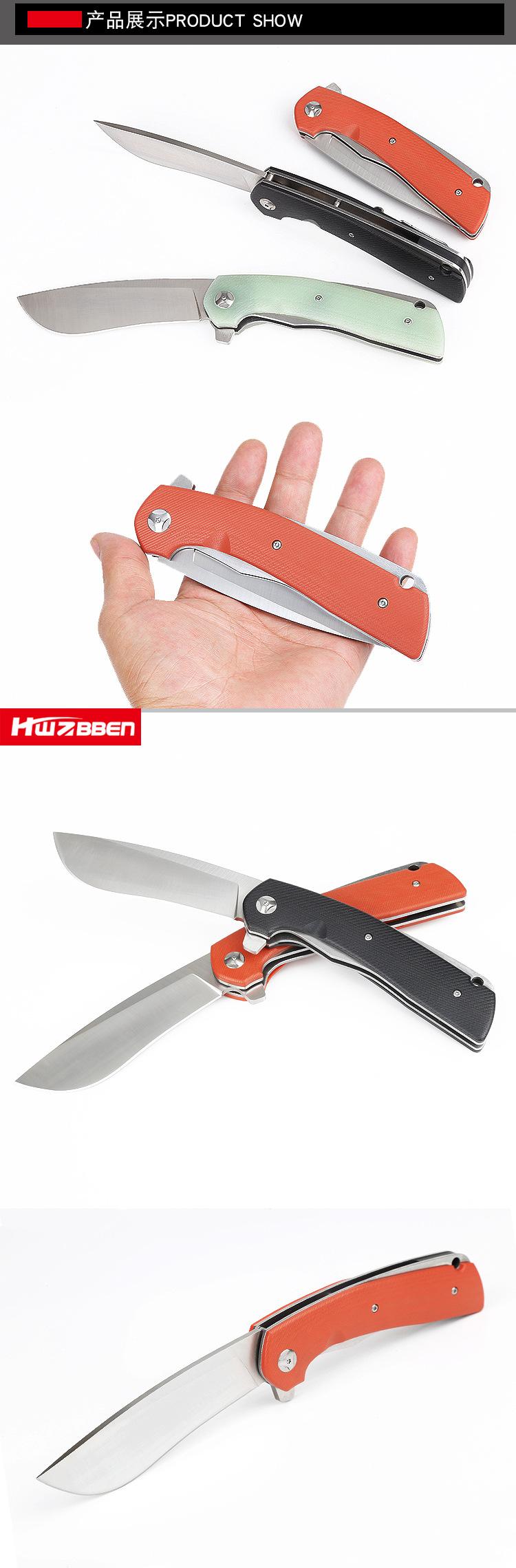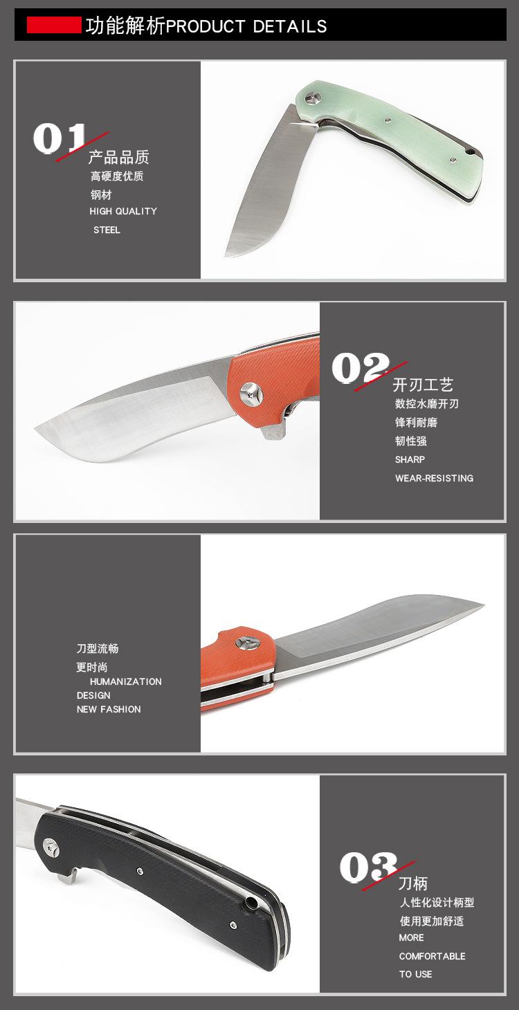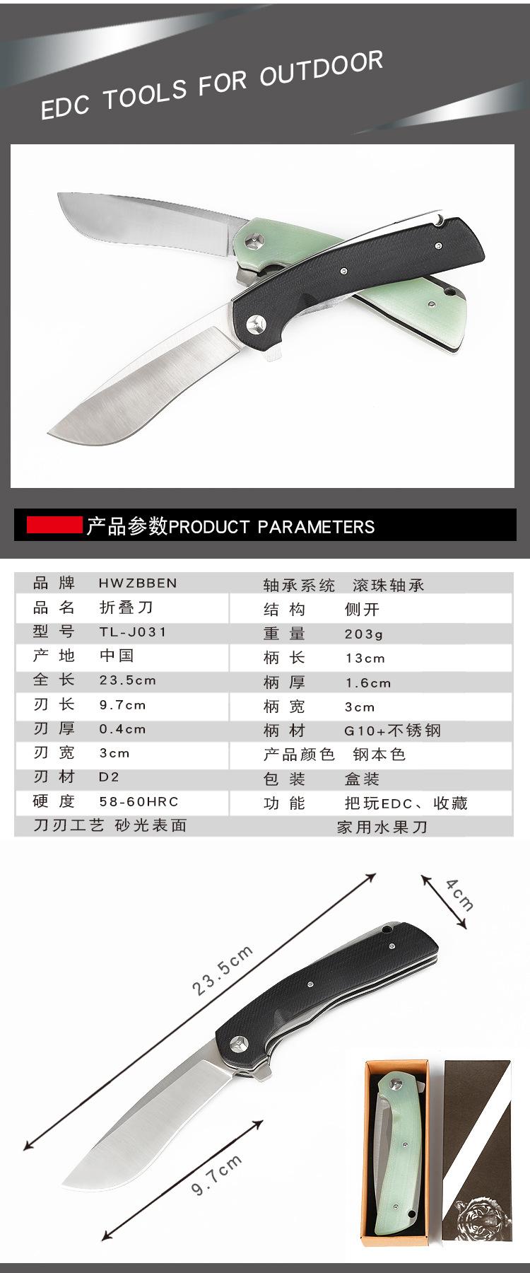 Cuchillo plegable para exteriores, hoja de acero D2, multifunción, de acero inoxidable, con mango G10, portátil y práctico EDC.
