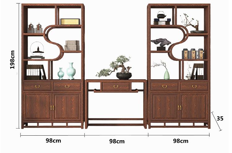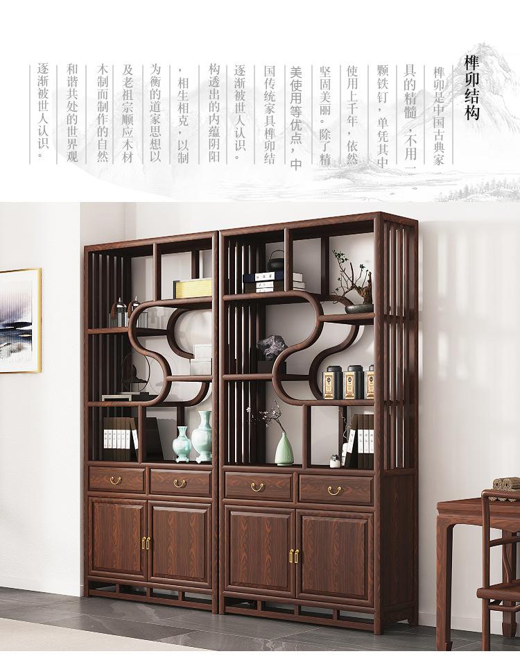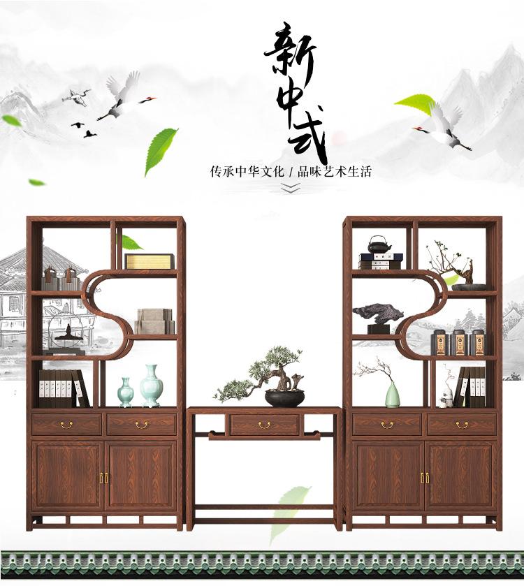 Estante antiguo de madera maciza estilo chino, estante de almacenamiento para salón de té, estante de exhibición, estantería de estudio con tres combinaciones, nueva estantería de estilo chino, pabellón Duobao