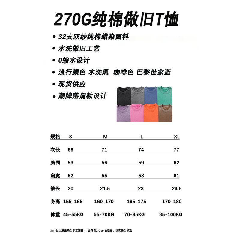 Camiseta de manga corta para hombre al por mayor, pesada de 270G, retro lavada antigua, camiseta holgada de algodón para hombre, camiseta de marca de moda para hombre, verano