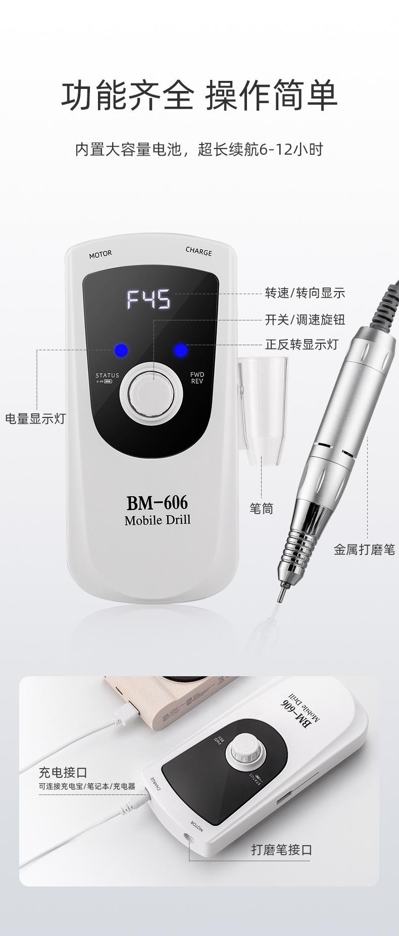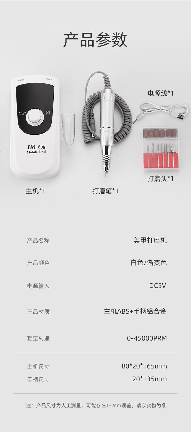 Pulidor de Uñas, Juego Completo de Pulidor de Uñas Portátil con Carga USB, Pulidor de Uñas Eléctrico, Pulidor de Uñas
